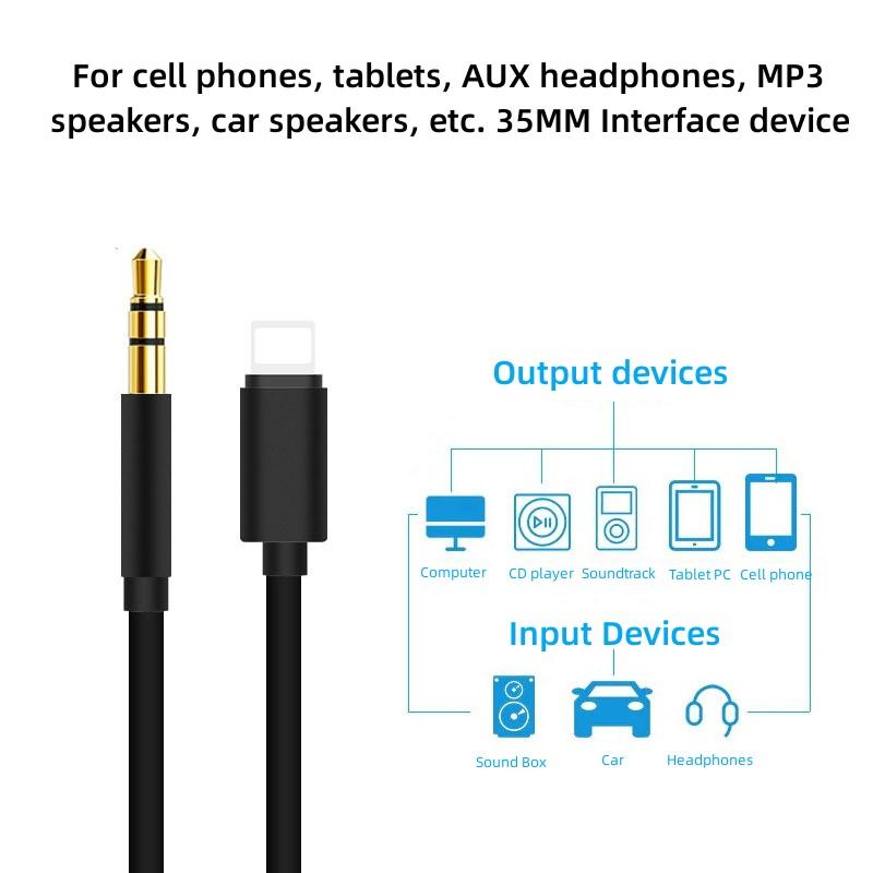 Подходит для автомобильного аудиокабеля-адаптера AUX от молнии до 3,5 мм, адаптера для прослушивания, аудиокабеля