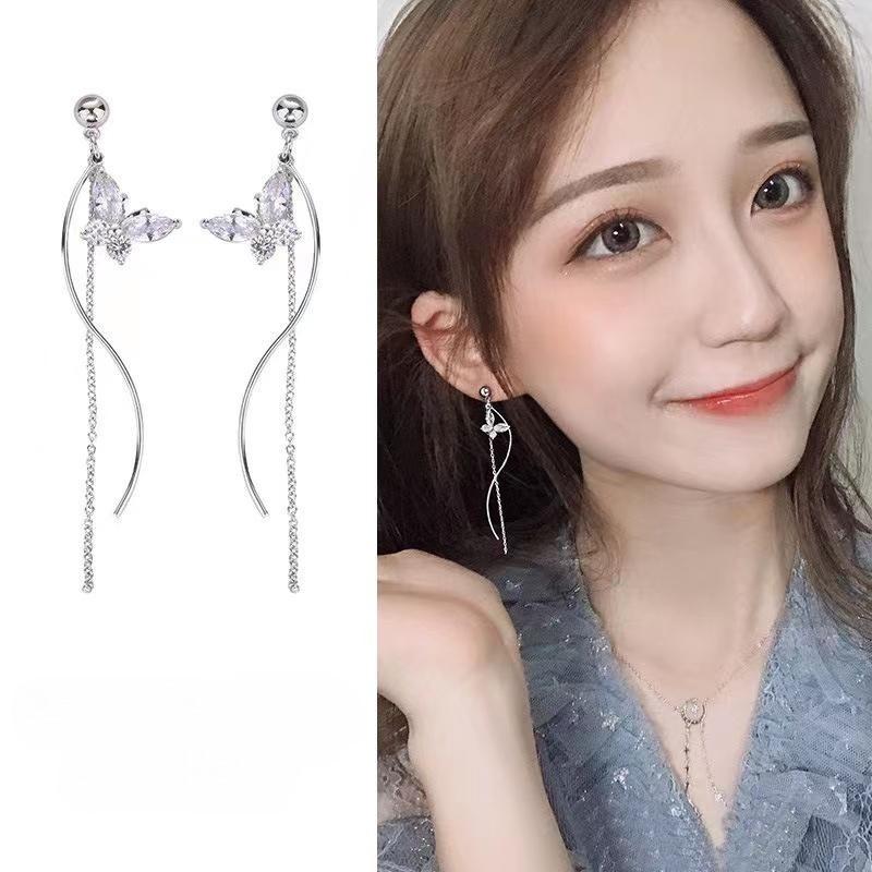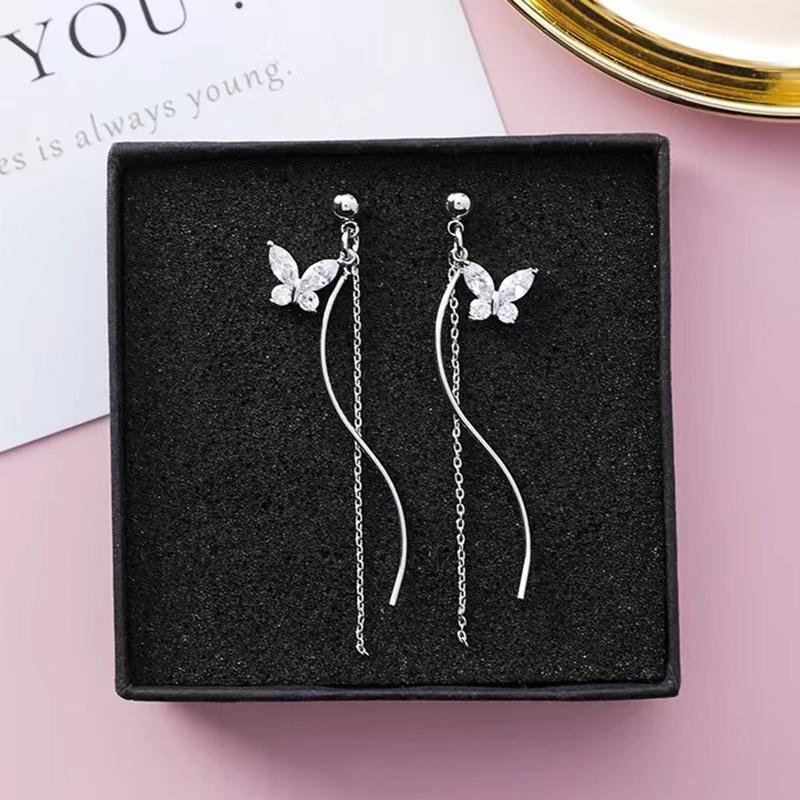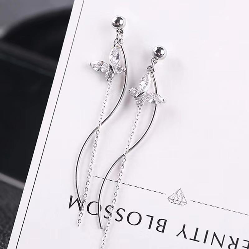 Женские длинные серьги-кисточки с бабочкой и цирконом