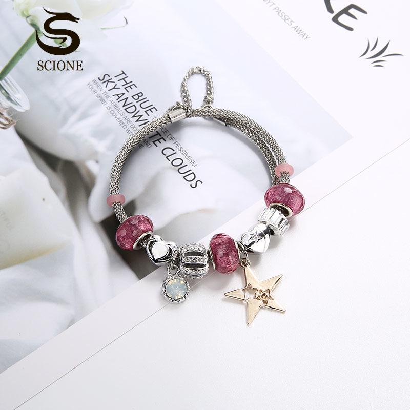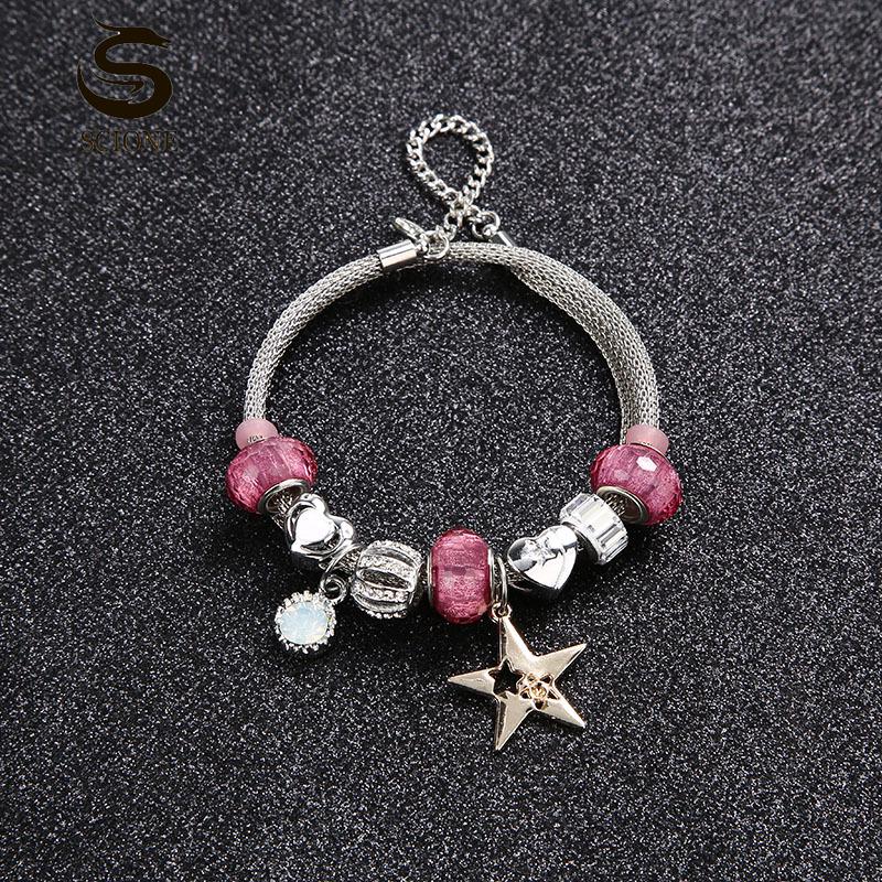 LUXY MOON Женский модный розовый браслет с пентаграммой и кристаллом любви, браслет