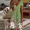 Летнее модное платье с v-образным вырезом, женское платье с коротким рукавом и красным цветочным принтом, свободное повседневное платье для женщин