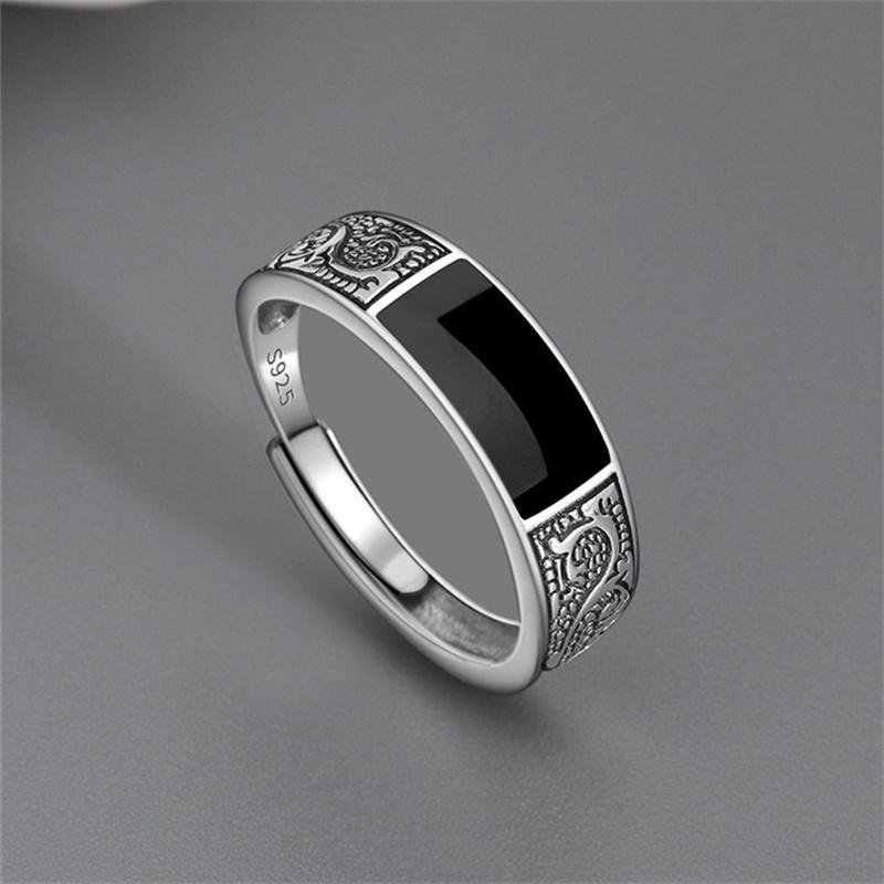 Модное кольцо из стерлингового серебра 925 пробы для мужчин, ювелирные изделия, черный прямоугольный ретро-кольцо с узором дракона, мужские аксессуары на палец Infex, открытые