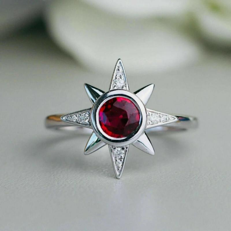 Минималистичные кольца с цветком солнца для женщин, серебряный цвет, круглый красный камень, тонкое кольцо, обручальные кольца, ювелирные изделия для вечеринок в стиле бохо