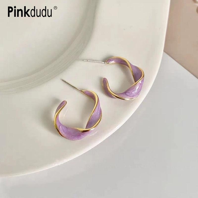 Pinkdudu Новые модные фиолетовые серьги-гвоздики в форме буквы C, простые креативные кремово-белые геометрические серьги для женщин, ювелирные изделия PD1361