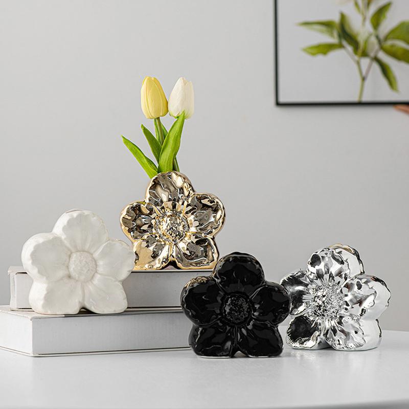 Креативная ваза в форме цветка, керамическая гидропонная ваза, цветочная композиция, домашний декор, настольные украшения, украшение сада