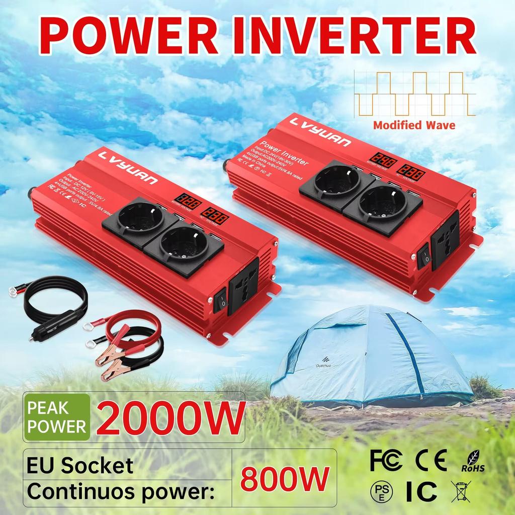 2000W (Вершина горы) DC12V/24V до 230V 800W Номинальная мощность Инвертор 4 USB порта, 2 EU 1 универсальная розетка переменного тока для кемпинга Домашние автономные солнечные системы