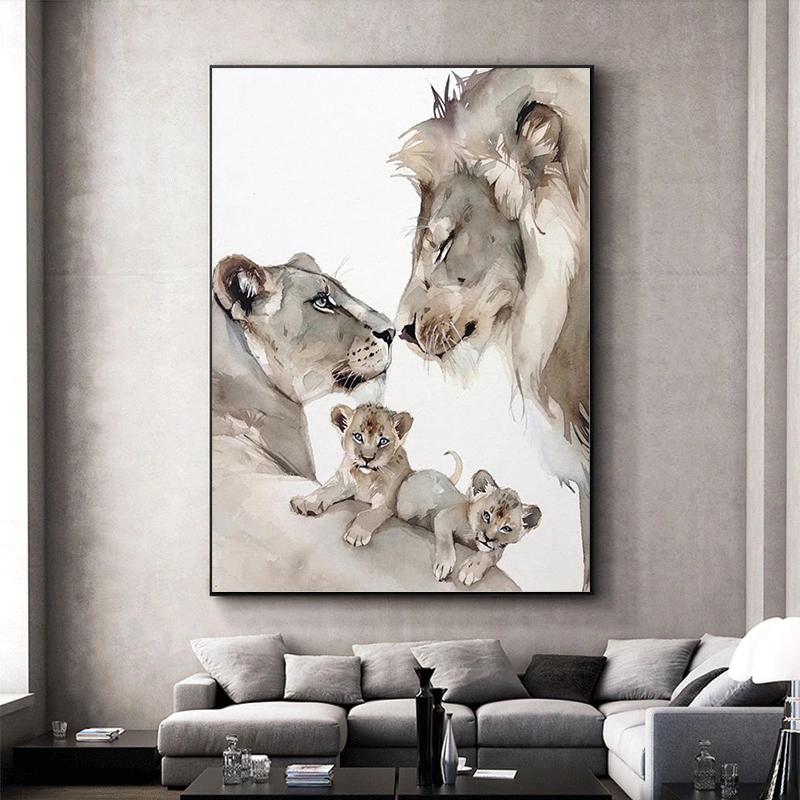 Лев Семья Плакат Печать Отец Мать Дети Настенное Искусство Муж и Жена Любящий Дом Холст Картины Настенные Художественные Украшения Картины