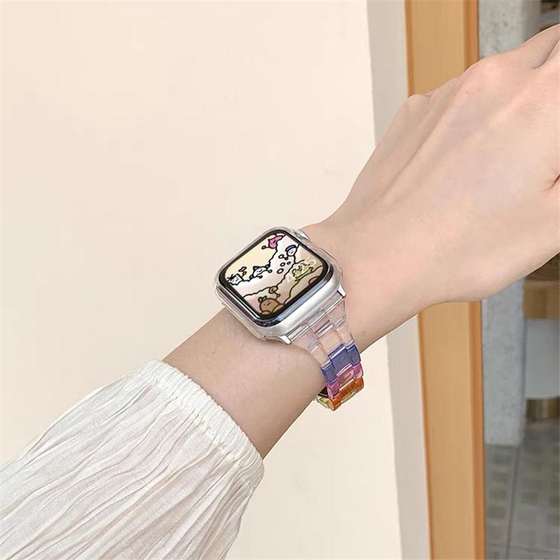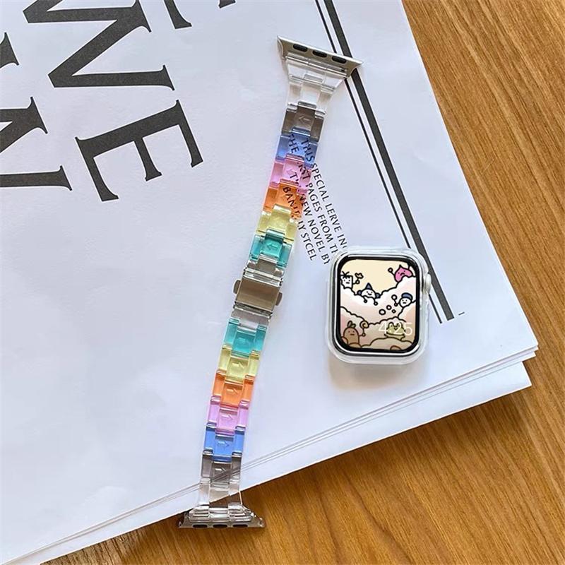 Цветной прозрачный ремешок для Apple Watch Series 8 7 SE 6 5 4 3 модный ремешок для Iwatch 49 мм 41 мм 45 мм 44 мм 40 38 42 браслет