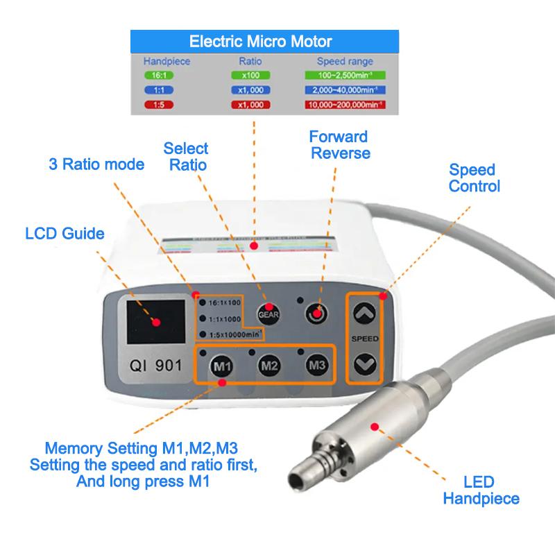 Стоматологический электрический микромотор Портативный светодиодный бесщеточный микромотор