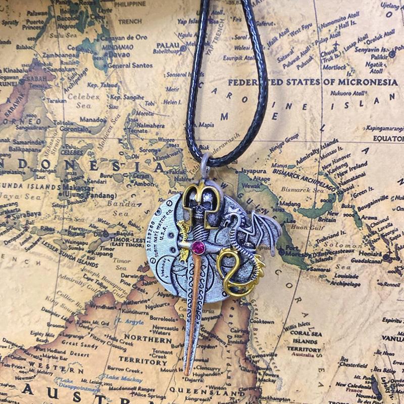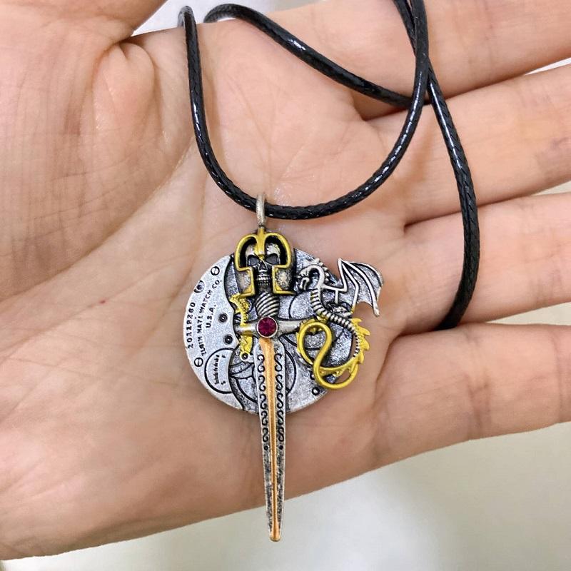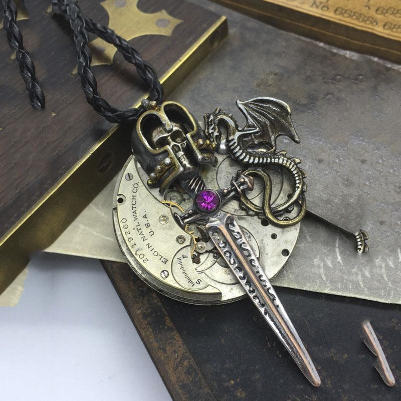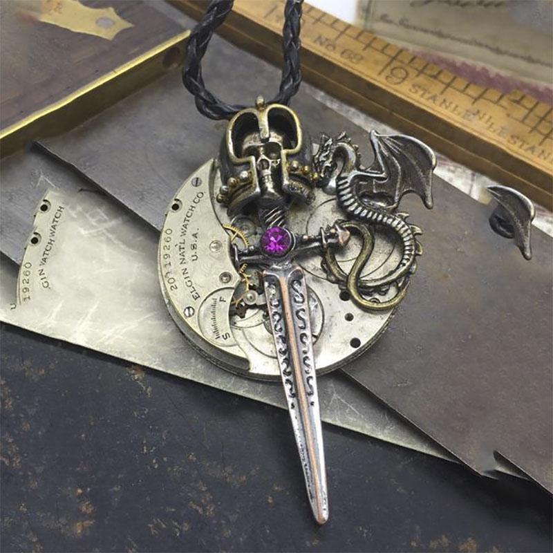 Уникальный креативный винтажный череп Migic меч с крыльями дракона с веревкой, кулон, длинная цепочка, мужское медное ожерелье, ювелирные изделия