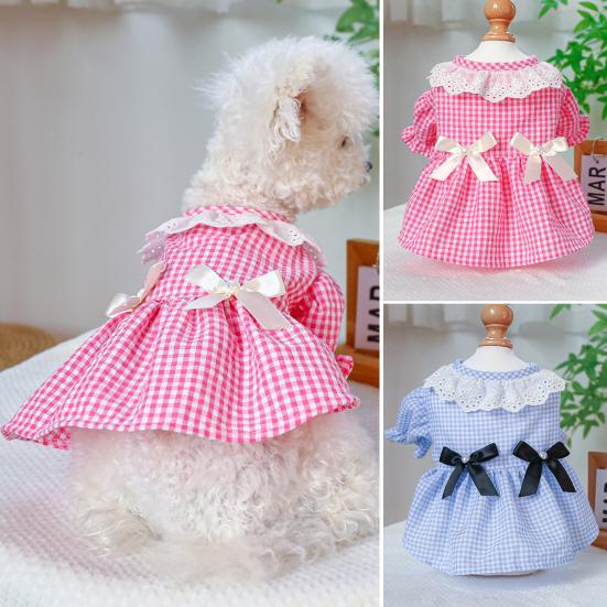 Платье для собак, мягкое, удобное, с круглым вырезом, очаровательное летнее клетчатое платье для домашних животных, собак, кошек, товары для домашних животных