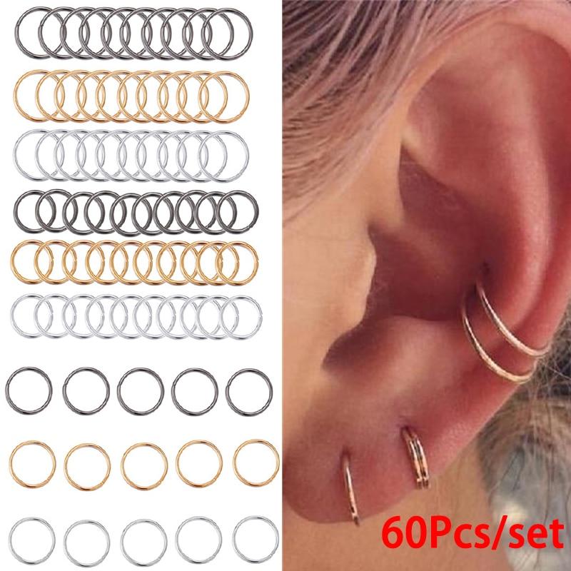 Модные серьги-кольца золотого, серебряного цвета, маленькие круглые серьги-кольца для женщин, черные серьги-кольца, серьги-кольца для пирсинга, комплект ювелирных изделий