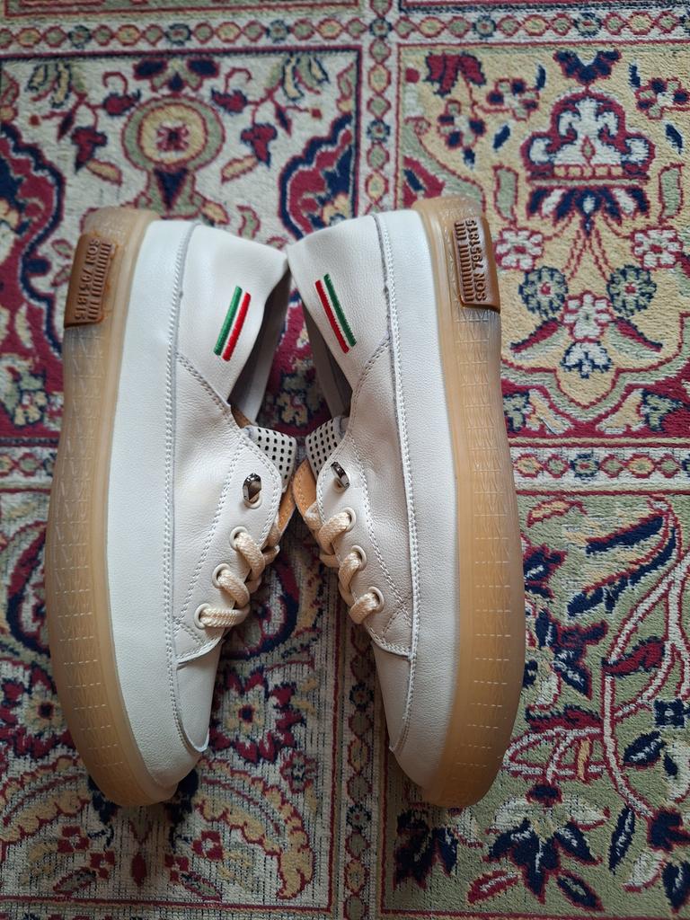 На одном шнурке отсутствовал зажим(( В остальном все как описано. У меня стопа 24 см, заказала 38, отлично подошли. Дополняю : ношу уже больше месяца, очень удобные мягкие, минус что начала отклеиваться подошва сзади.