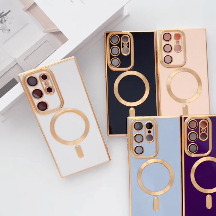 Роскошный магнитный чехол для телефона с беспроводной зарядкой для Samsung S21 S22 S23 Ultra Plus Magsafe, бампер, противоударный мягкий чехол — купить товар онлайн с бесплатной доставкой по всему миру!