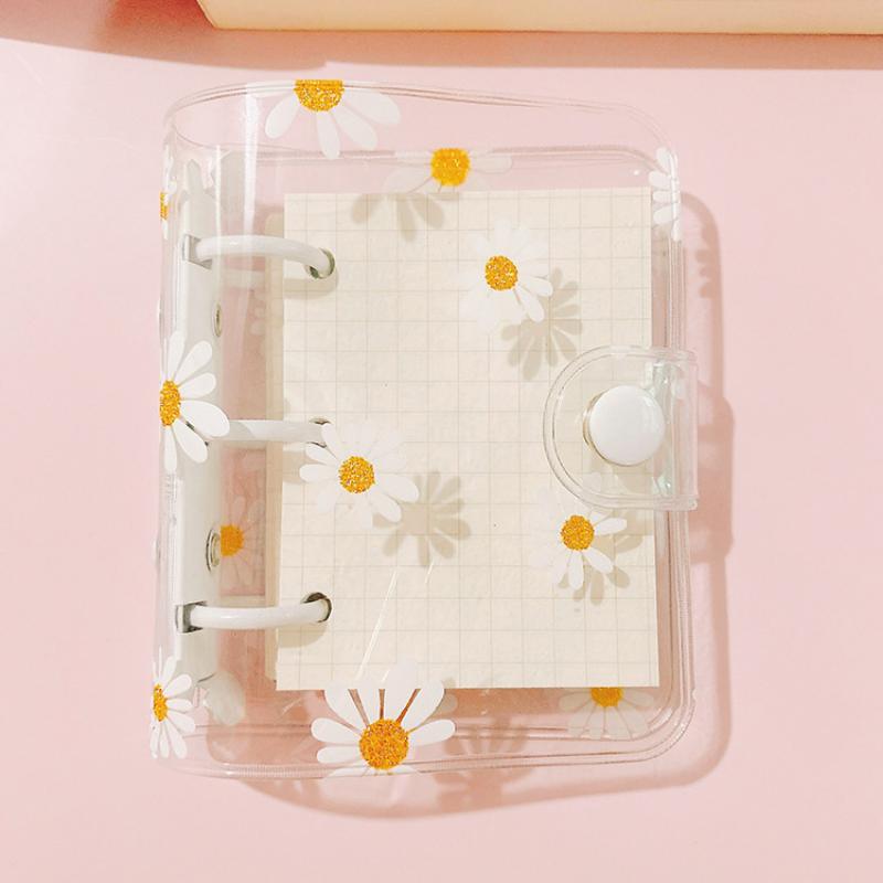 Kawaii Daisies Прозрачный мини-переплет с 3 кольцами, блокнот с отрывными листами, дневник, журнал, записная книжка, скрапбукинг, офисные школьные принадлежности
