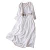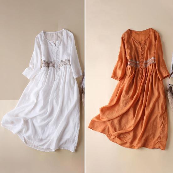 Летнее ретро-платье миди в этническом стиле с вышивкой и принтом, повседневное платье трапециевидной формы длиной до середины икры с длинными рукавами и пуговицами, полупланка