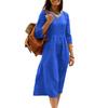 Летнее мини-платье с v-образным вырезом, рукавами три четверти, сплошной цвет, плиссированные карманы, свободная длина до середины икры, мягкая дышащая винтажная женская одежда