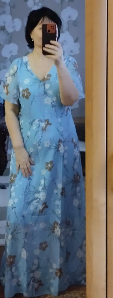 Платье не плохое, но ожидала другое. Думала будет ткань тонкой и мягкой. Оказалось ткань грубоватая и плотная не летящая, чехол под платьем тоже не тонкий. Летом в нём можно только в прохладную погоду, а так ткань плотная грубая и ещё и чехол под платьем вообще будет не выносимо в жару. На модели платье отличается видно что ткань тоньше и мягче более летящее.. Звезду снимать не стала. Сшито аккуратно, модель хорошая хорошо садится по фигуре. Цвет тоже красивый такой же как на фото. Конечно длинное но я его под режу . Размер взяла 2 XL село свободно можно было на размер меньше но летом лучше по свободнее тем более ткань не дышащая. Мои параметры рост 168 ОГ 103, ОТ 82 ,ОБ 108-110. Позже добавлю фото укороченное. Платье луче будет женщинам с узкими бедрами, а так полнит. Спасибо Джум и продавцу.