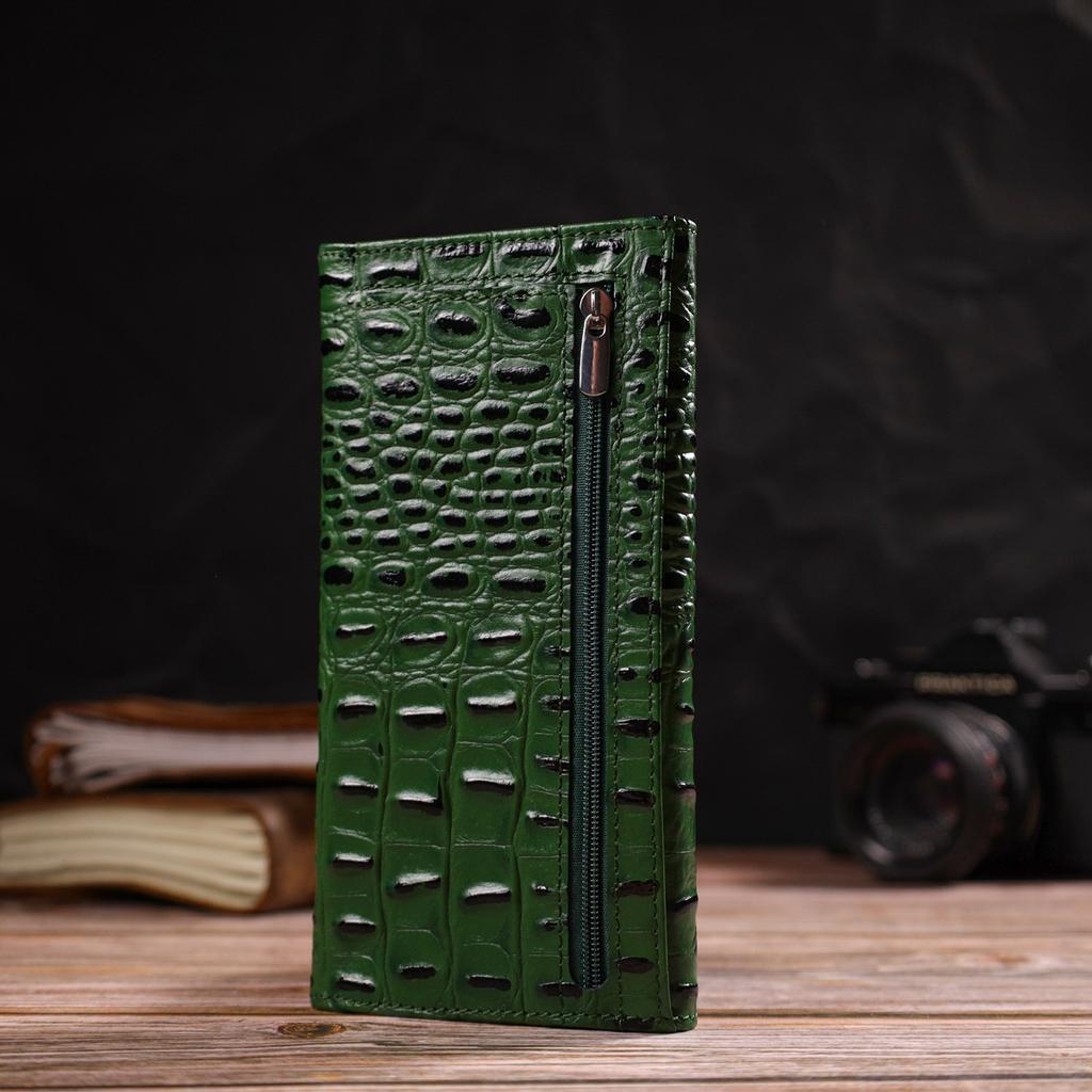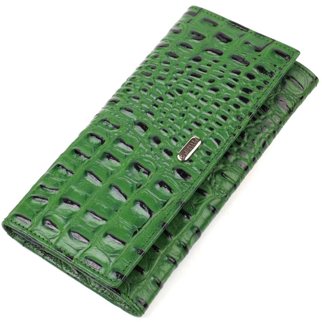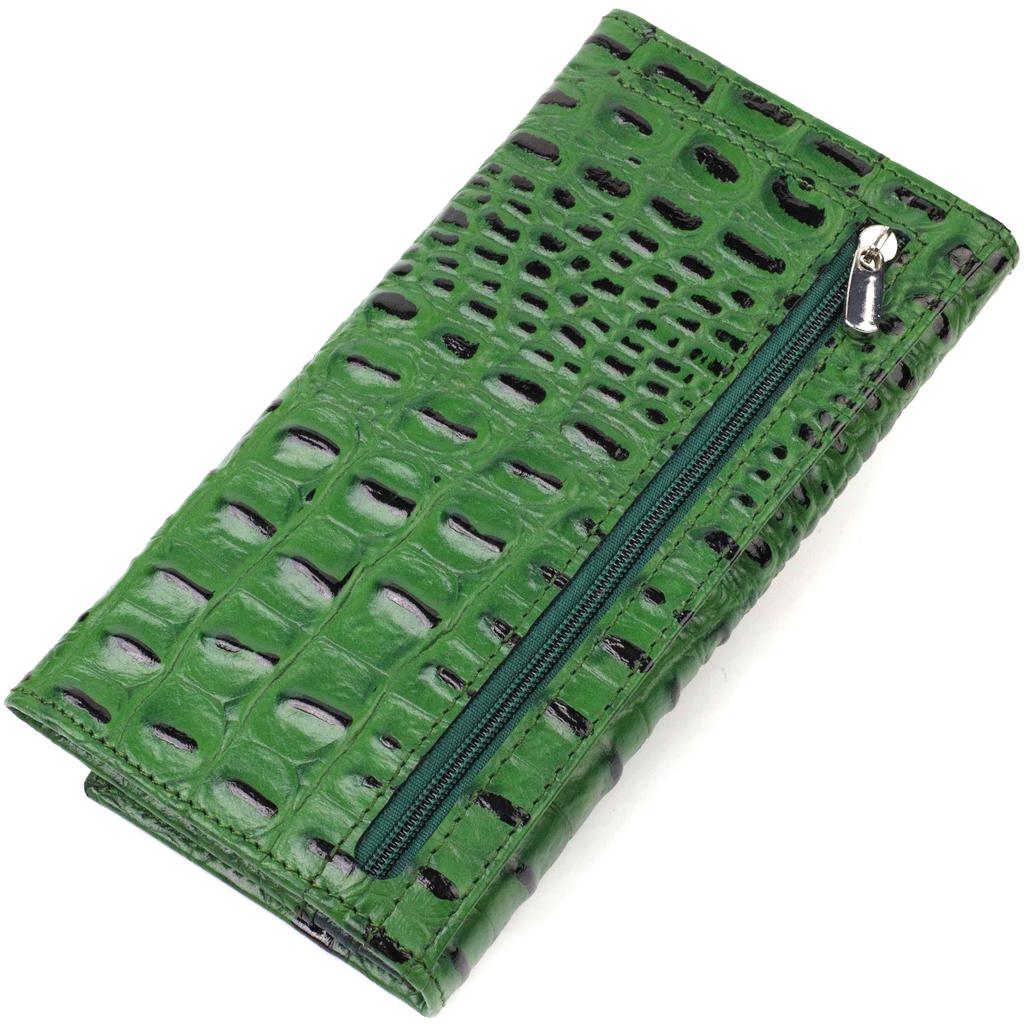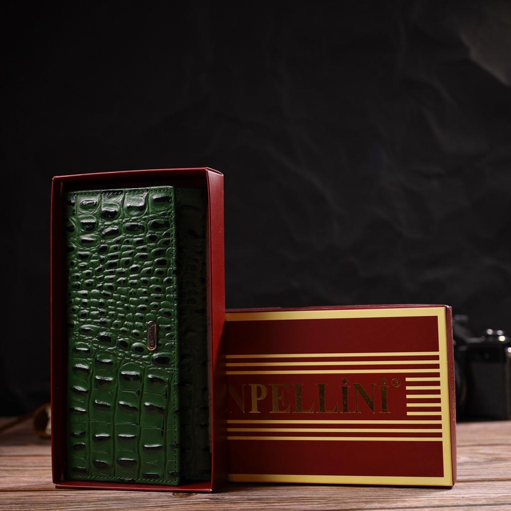 Оригинальный кошелек для женщин из натуральной фактурной кожи с тиснением под крокодила CANPELLINI 21825 Зеленый