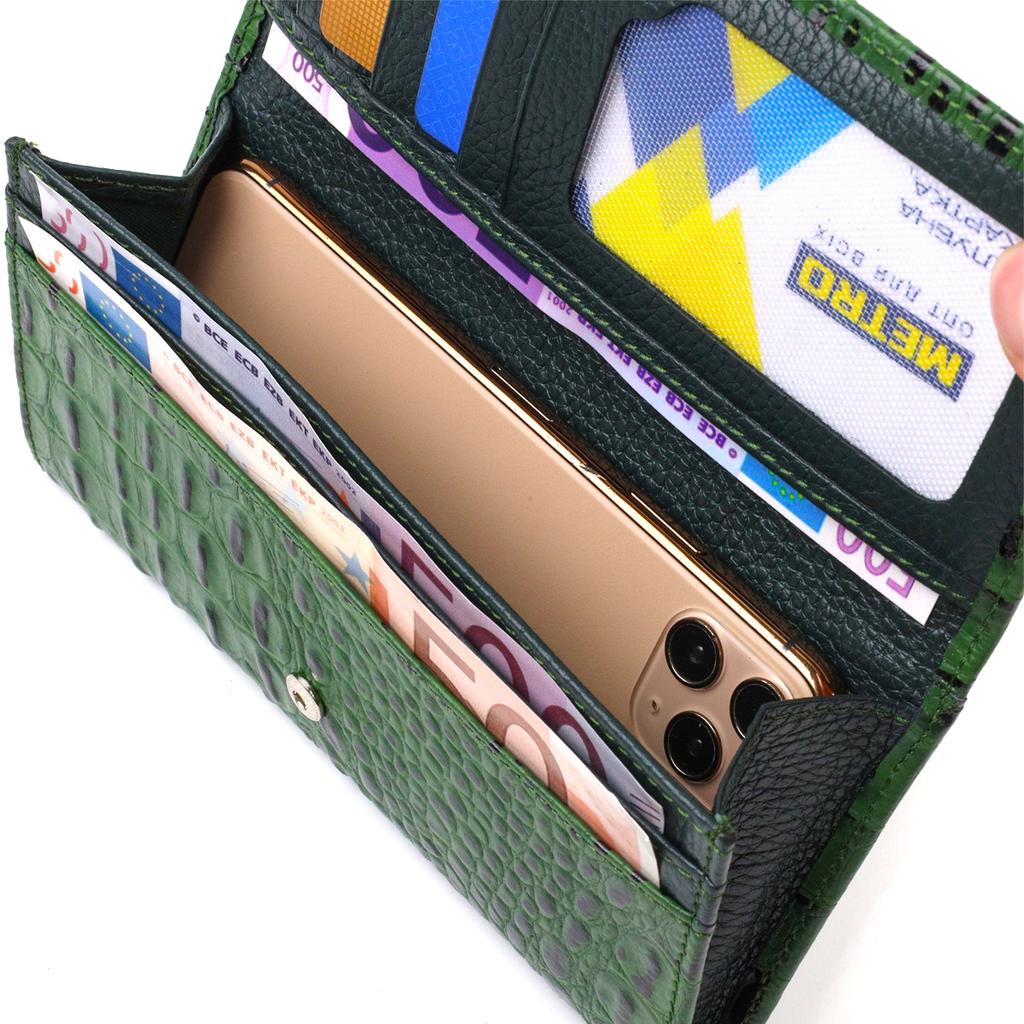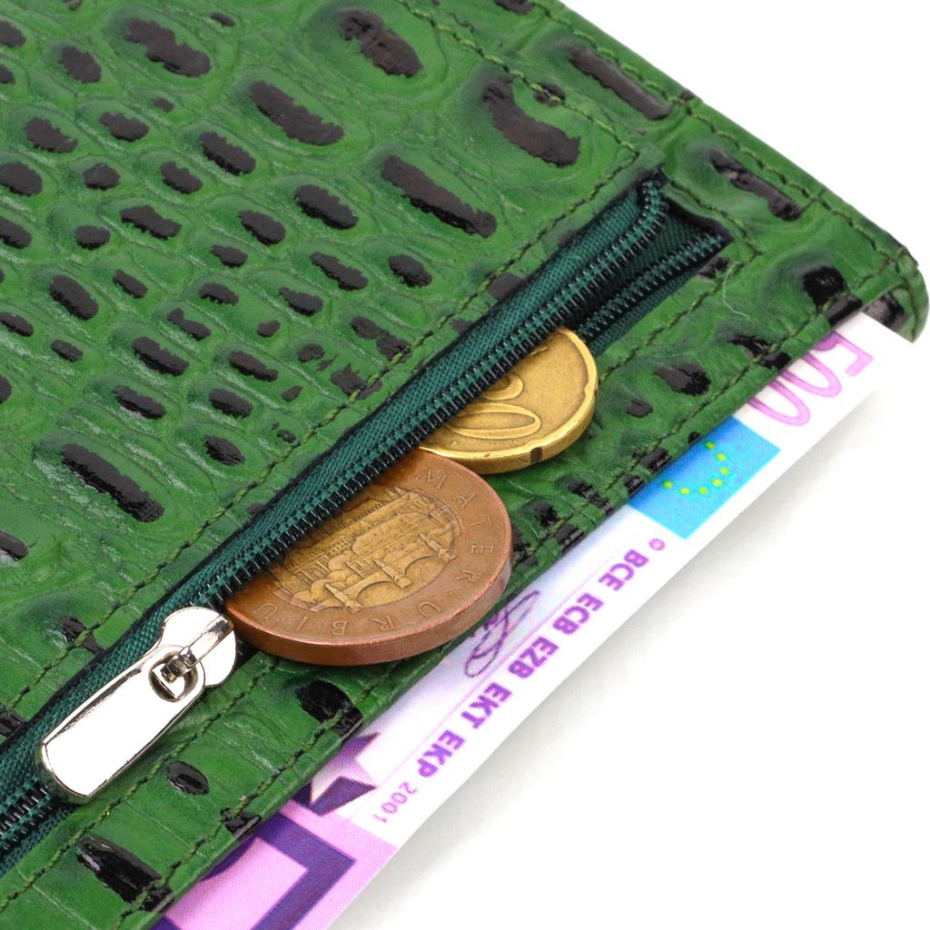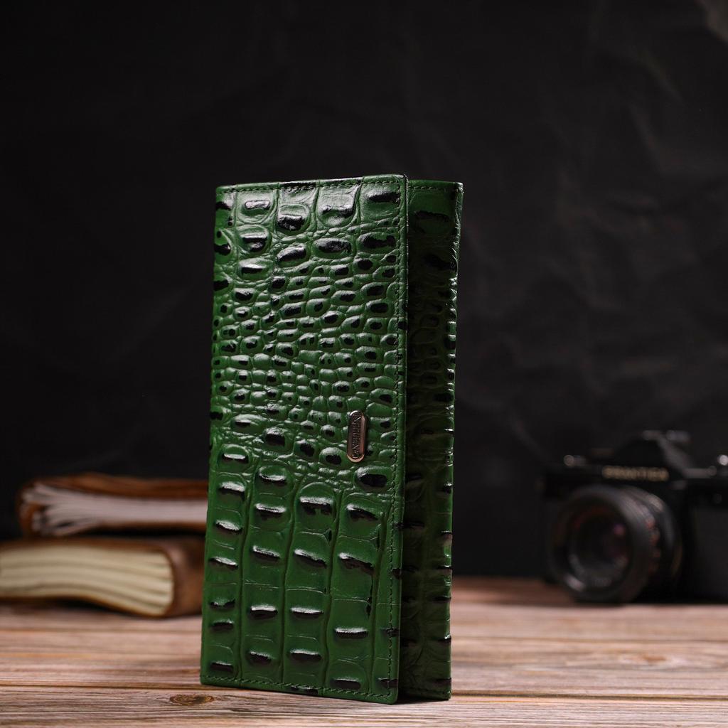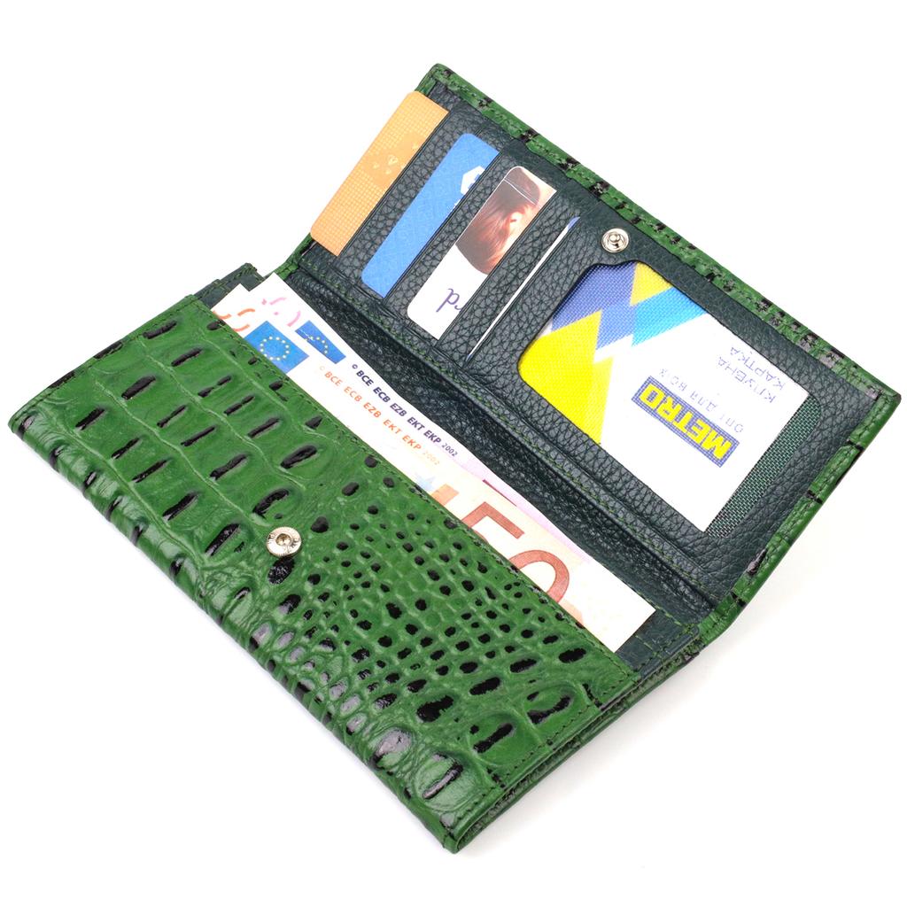 Оригинальный кошелек для женщин из натуральной фактурной кожи с тиснением под крокодила CANPELLINI 21825 Зеленый