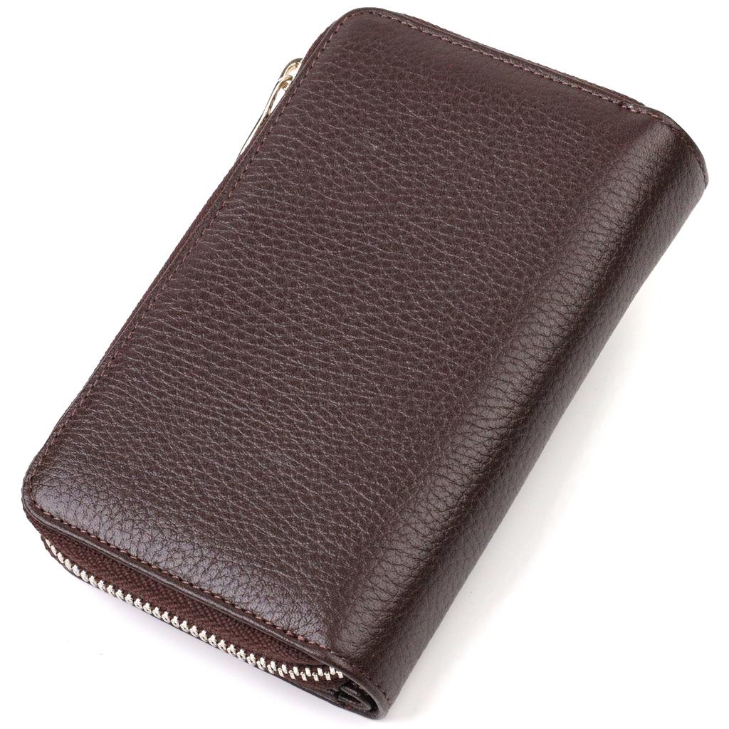 Практичное женское портмоне среднего размера из натуральной зернистой кожи CANPELLINI 21910 Коричневый