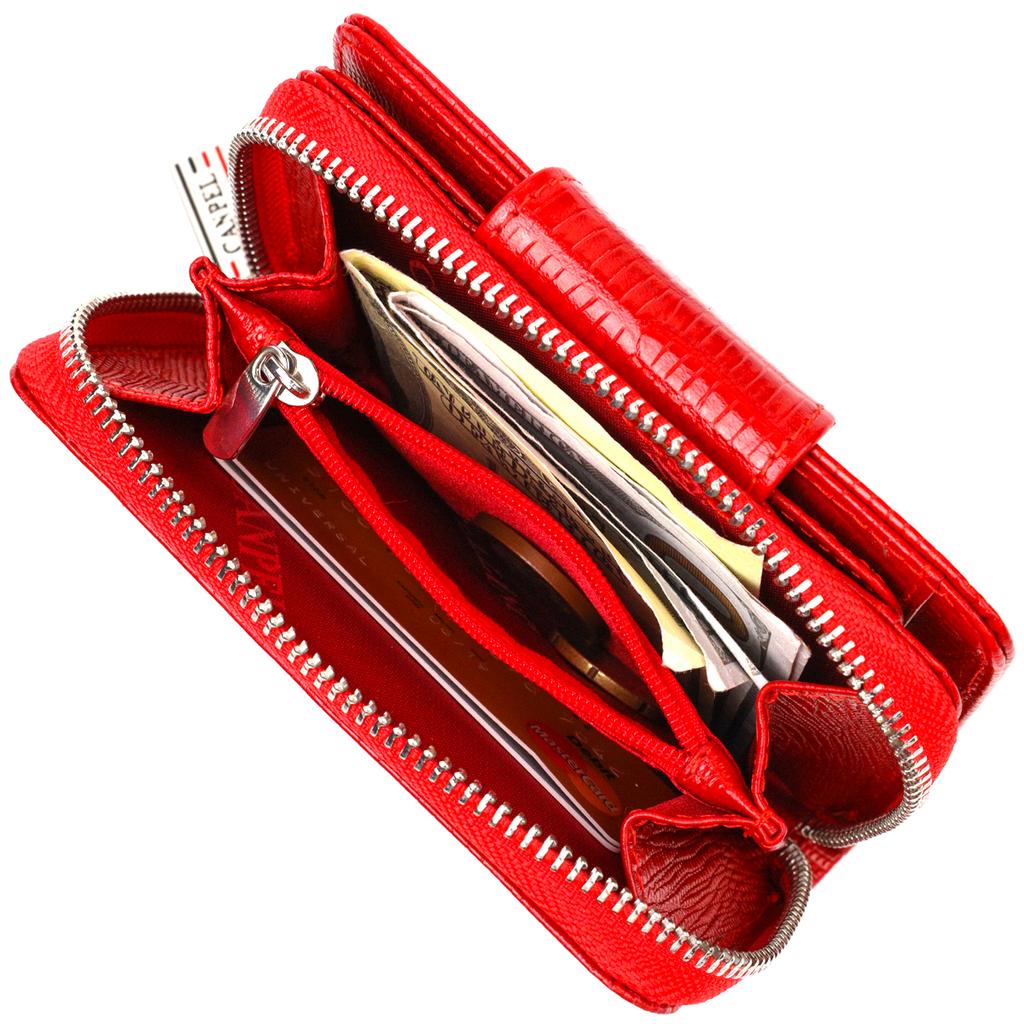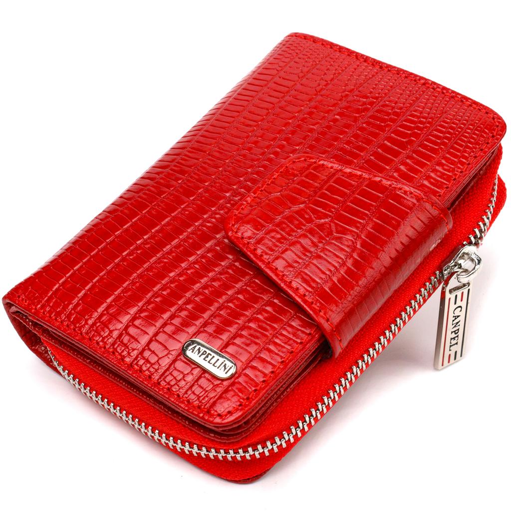 Фактурное женское вертикальное портмоне с монетницей на молнии из натуральной кожи с тиснением CANPELLINI 21731 Красный