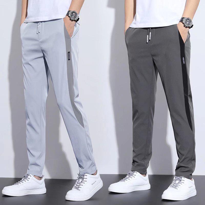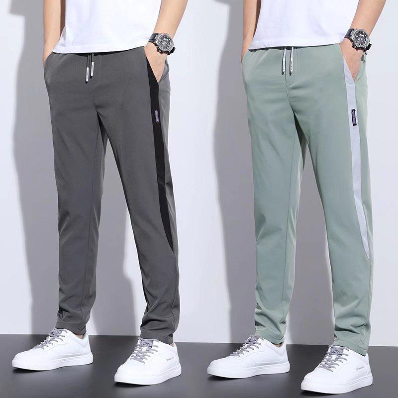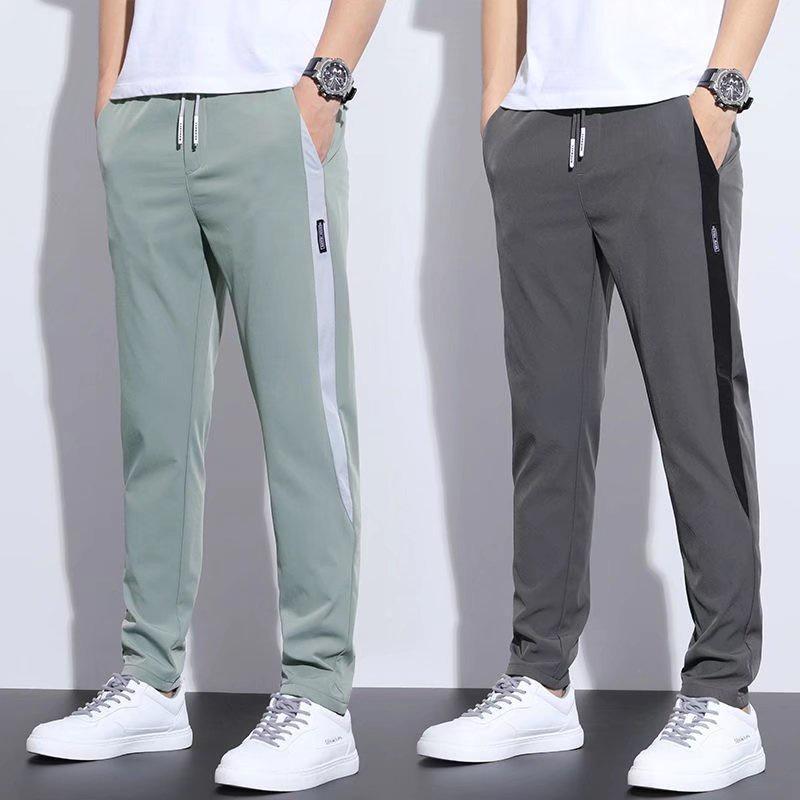 Брюки из ледяного шелка, мужские летние брюки, мужские трендовые свободные прямые тонкие повседневные брюки, дышащие спортивные брюки для мужчин