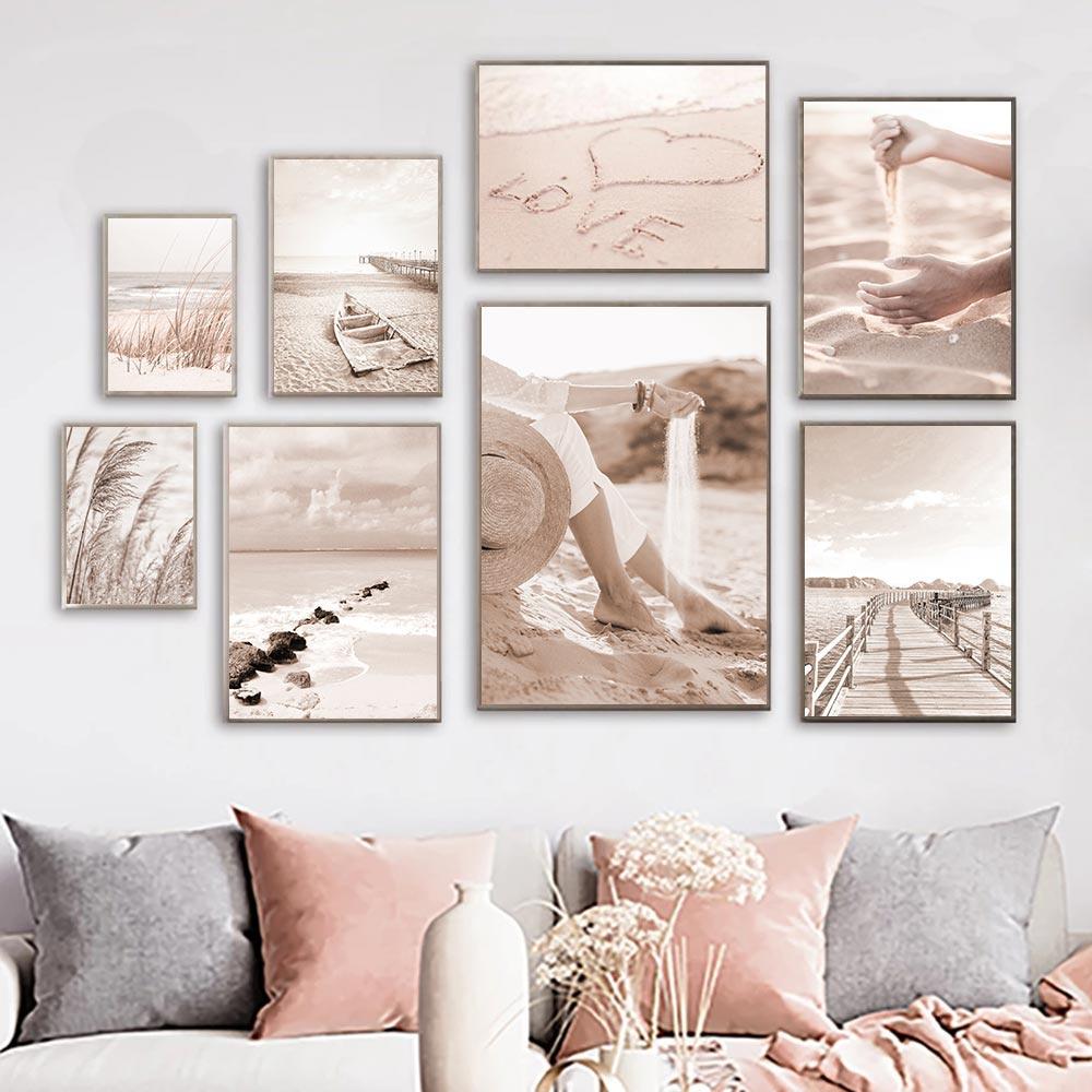 Морской пейзаж, настенный художественный постер и принты, пляжный песок, холст, картины, солнечные постеры на скандинавскую тему, настенные панно для декора гостиной