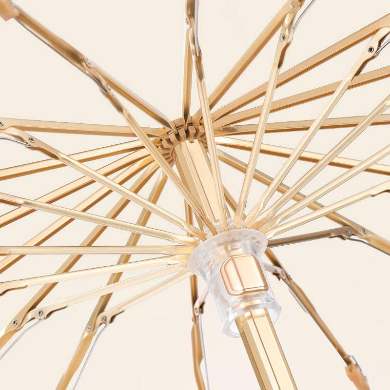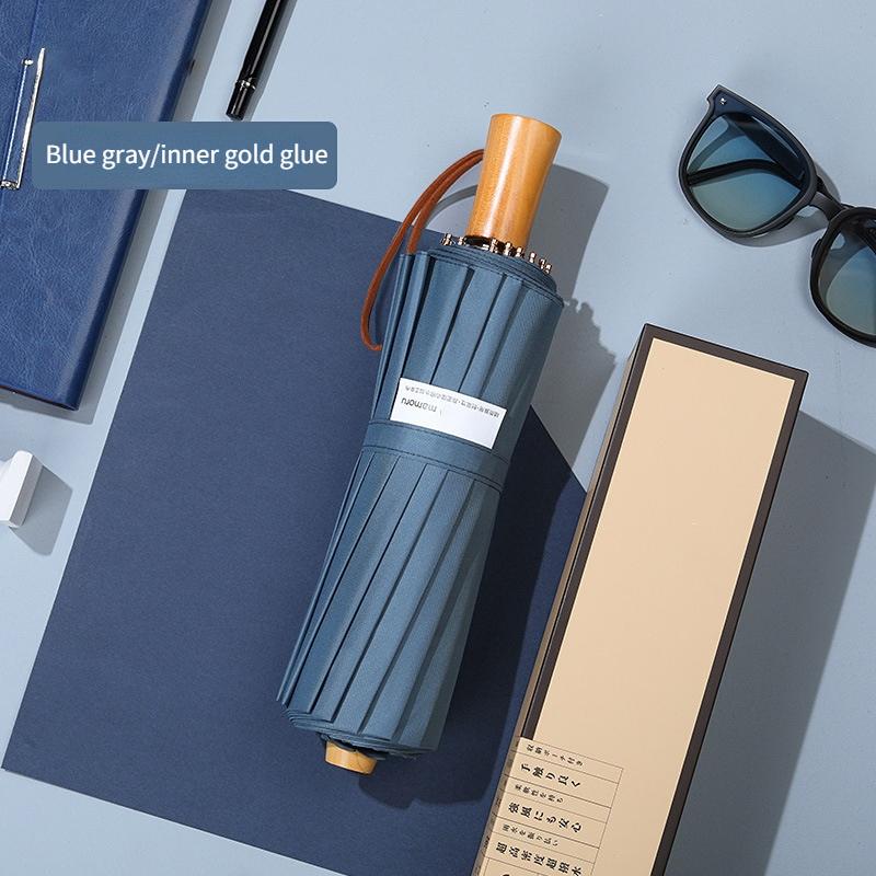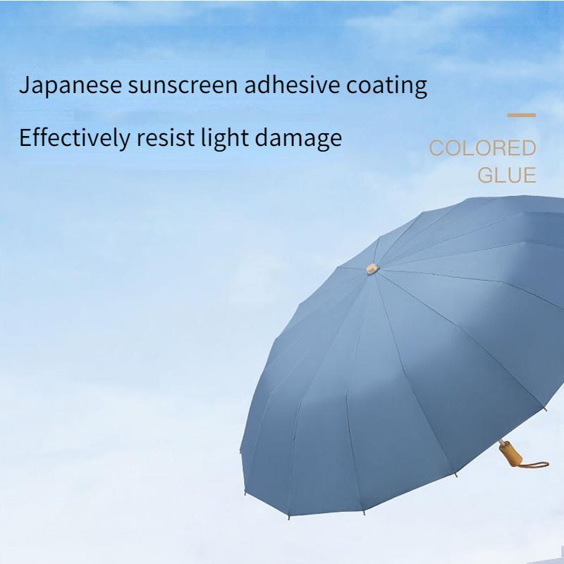 Новая деревянная ручка, цветной клей 210T, 16 ребер, складной зонт как для солнечных, так и для дождливых дней, полностью автоматический тройной складной зонт