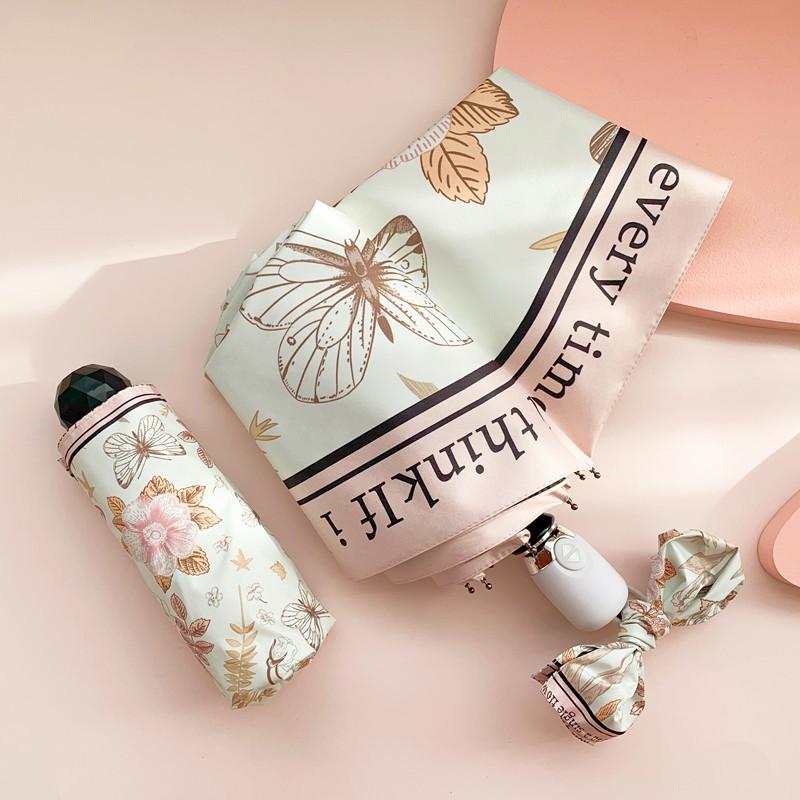 INS красивый французский стиль розовый ретро автоматический зонт для девочек виниловый солнцезащитный зонт УФ-защитный складной зонт от солнца