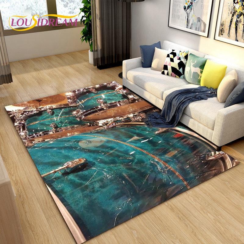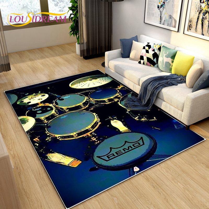 Барабанная установка, ковер с музыкальными инструментами, большой ковер, ковер для гостиной, спальни, дивана, коврик для украшения, кухонный нескользящий напольный коврик