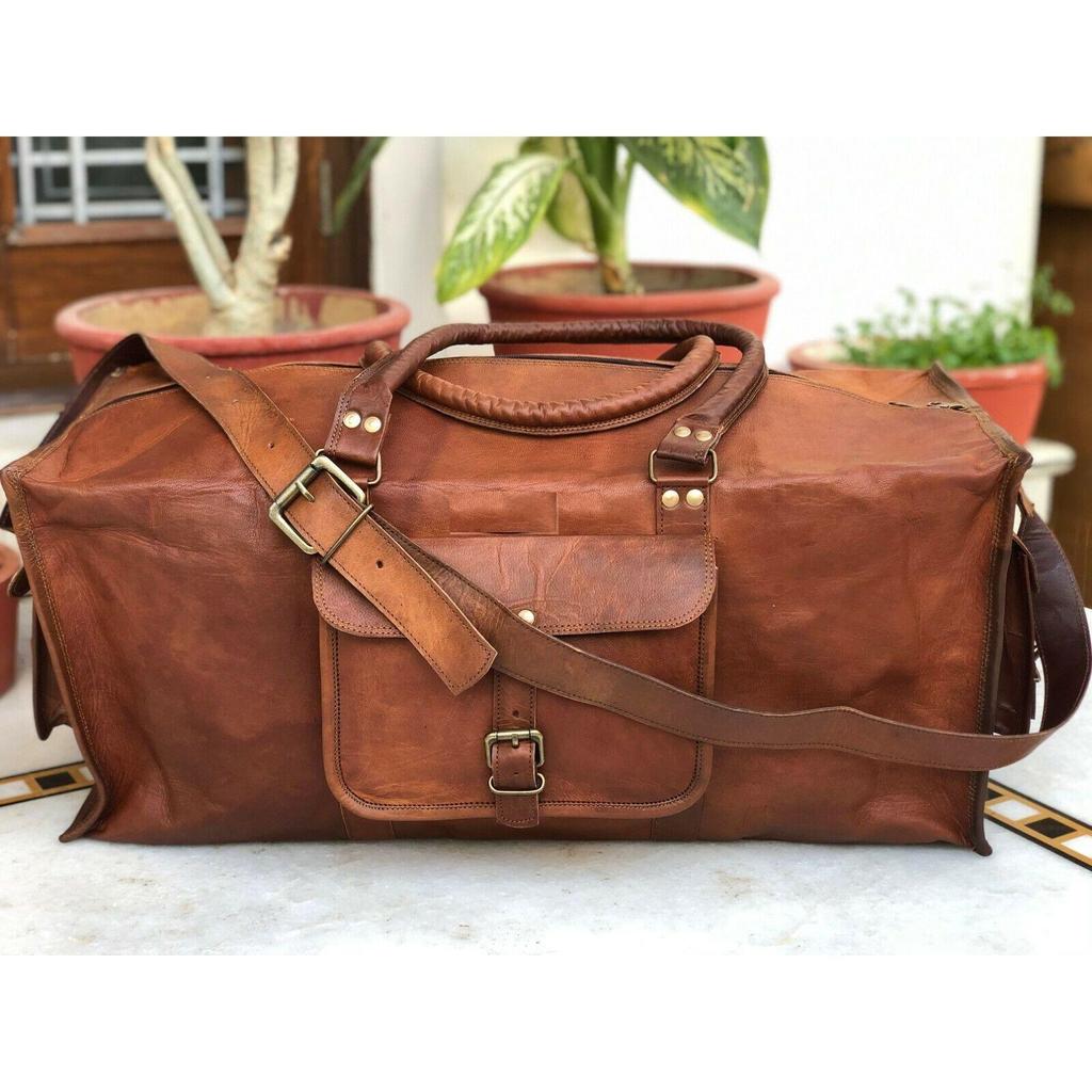 Кожаная большая мужская винтажная спортивная сумка Carryall для путешествий на выходные на ночь