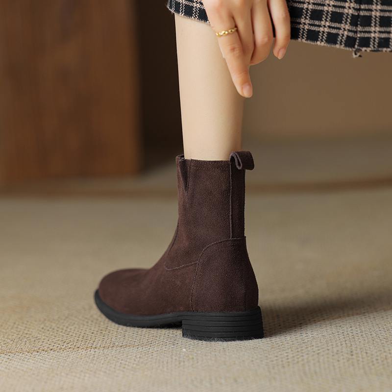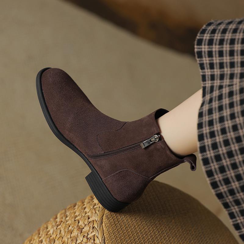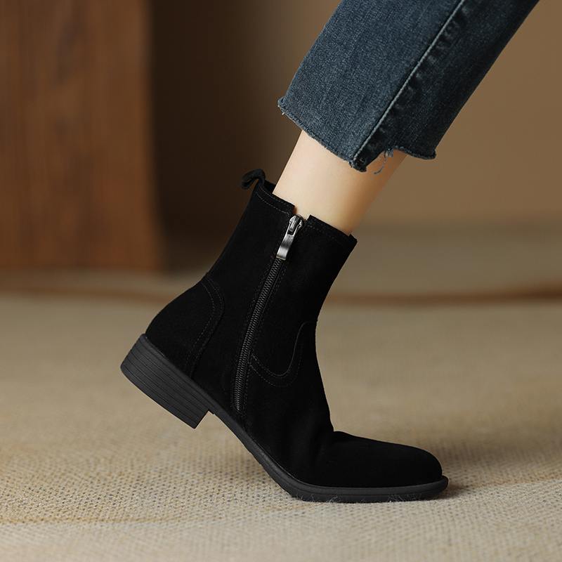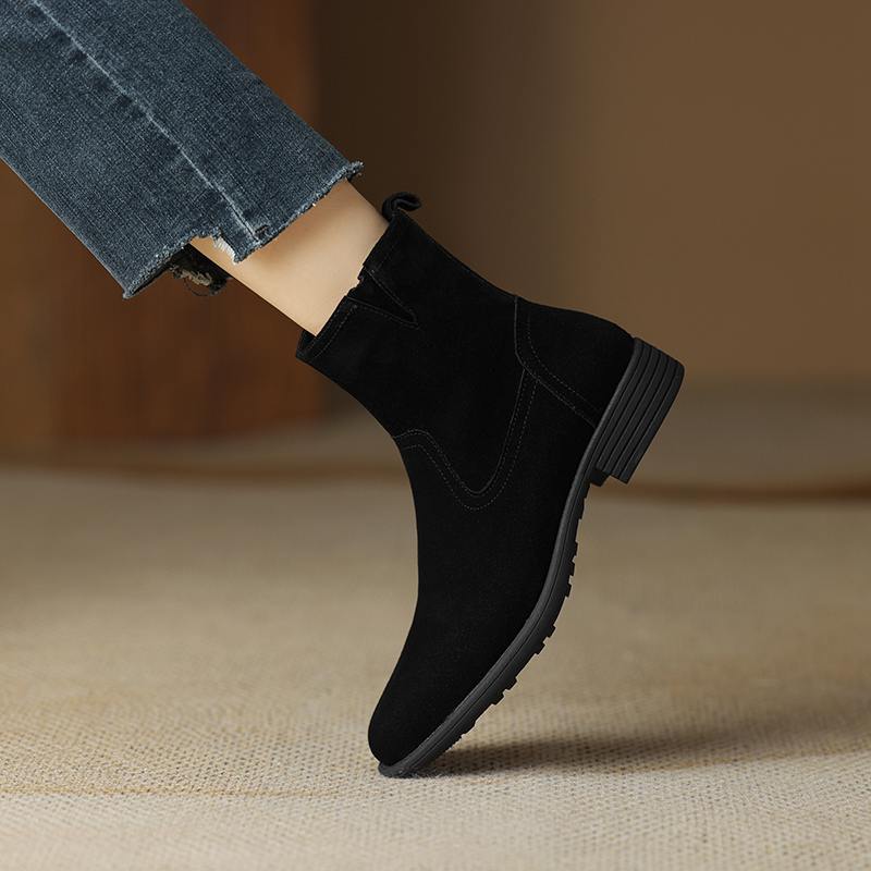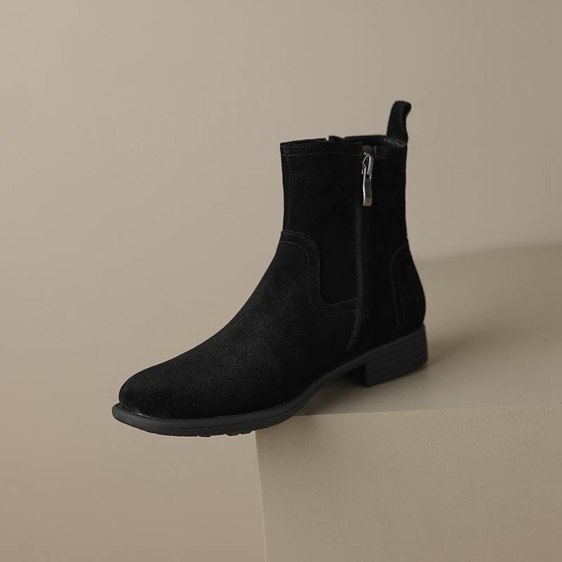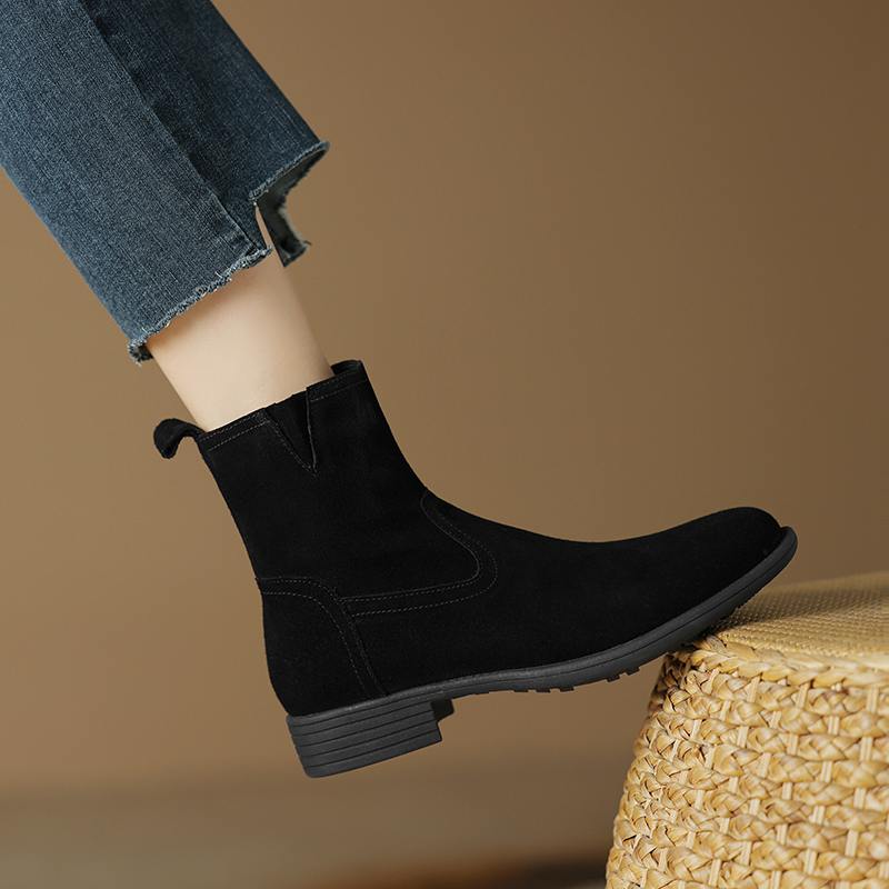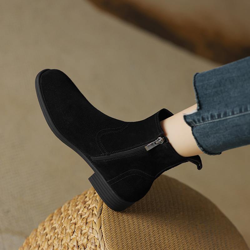 Krazing Pot Осенне-зимняя обувь из коровьей замши с круглым носком, большие размеры, ботинки «Челси» на толстом низком каблуке и молнии, женские универсальные ботильоны