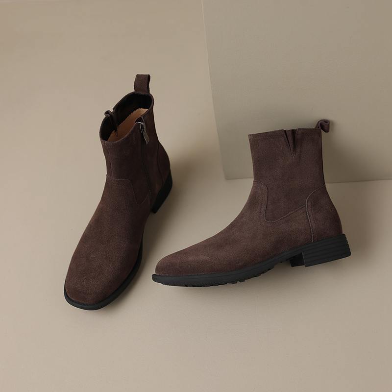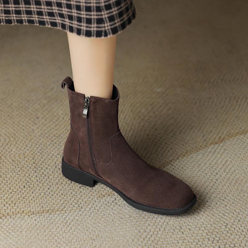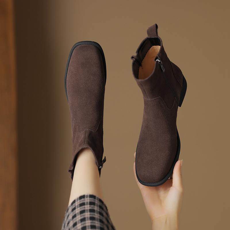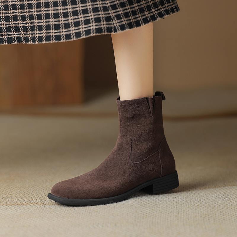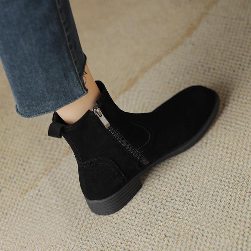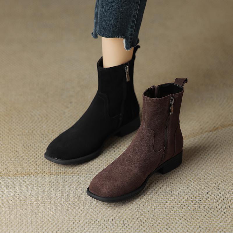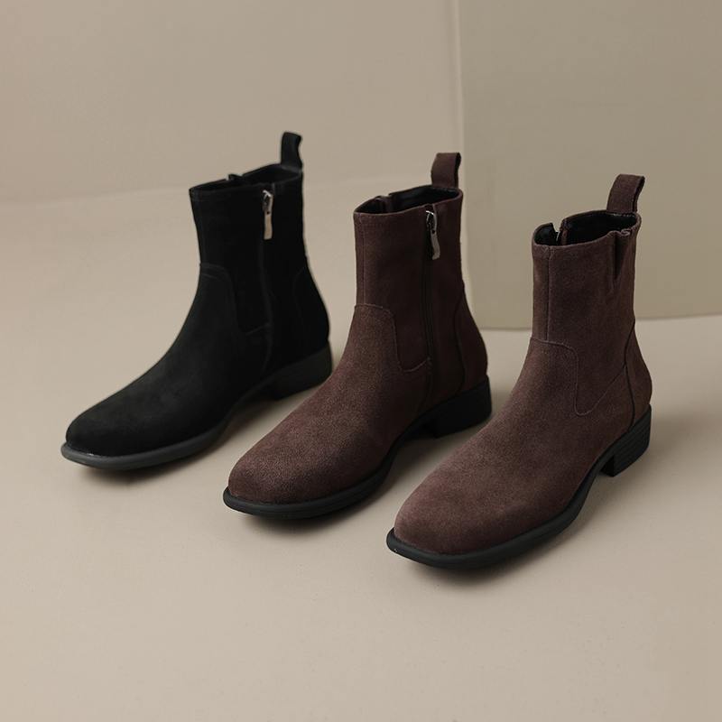 Krazing Pot Осенне-зимняя обувь из коровьей замши с круглым носком, большие размеры, ботинки «Челси» на толстом низком каблуке и молнии, женские универсальные ботильоны