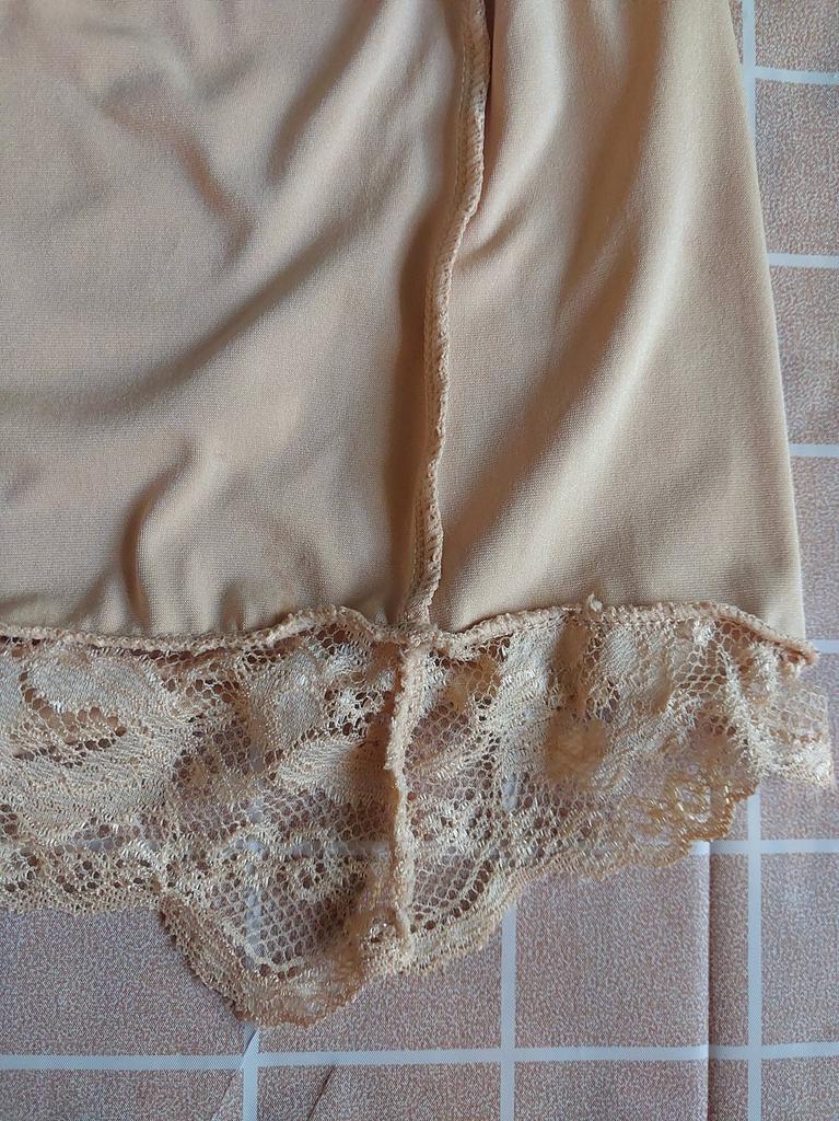 Комплект отвратительный. На фото майка с шортиками, по сути - топ с трусами. Кружево тонюсенькое, заворачивается. Пошит костюм очень плохо, повсюду швы, везде торчат нитки, кое- где швы разошлись 😤. Брала из-за майки, чтобы под низ полупрозрачной блузки надевать, но "майка" кроме груди ничего не прикрывает, живот торчит 😂. Материал как и заявлено полиэстер, но тонкий. Ткань тянется. Перед детьми такой комплект не наденешь, всё выделяется. Заказывала размер L.Топ соответствует заявленным см в размерной сетке. (Длина 23 см) Длина "шортиков" 29 см, это меньше на 4 см чем заявлено (33 см) К приобретению не рекомендую. Желаю всем удачных покупок.