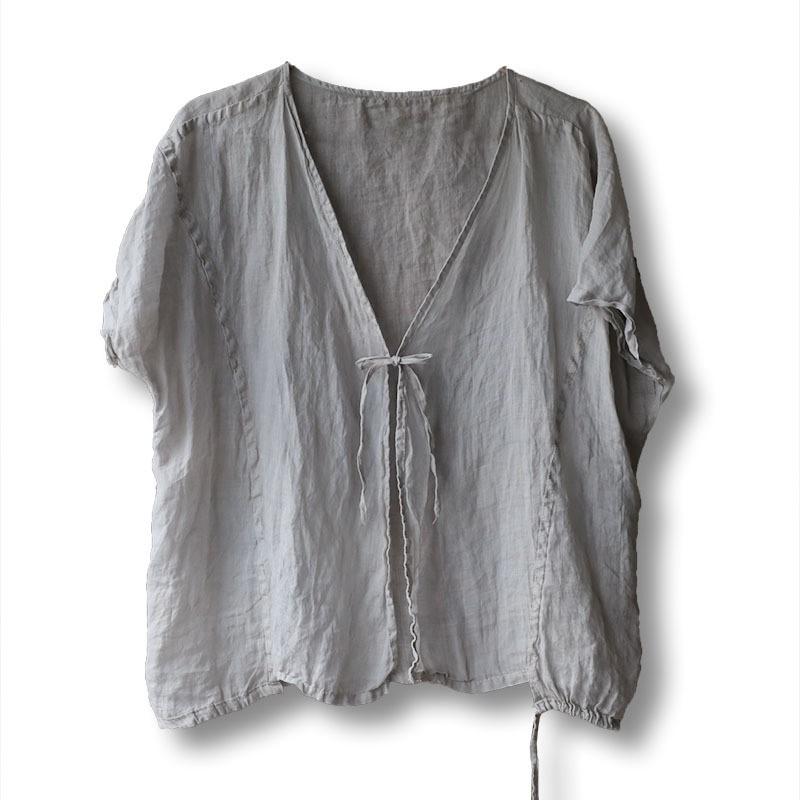 Johnature Женские летние рубашки Ramie, однотонные топы с v-образным вырезом и короткими рукавами, летние женские блузки высокого качества
