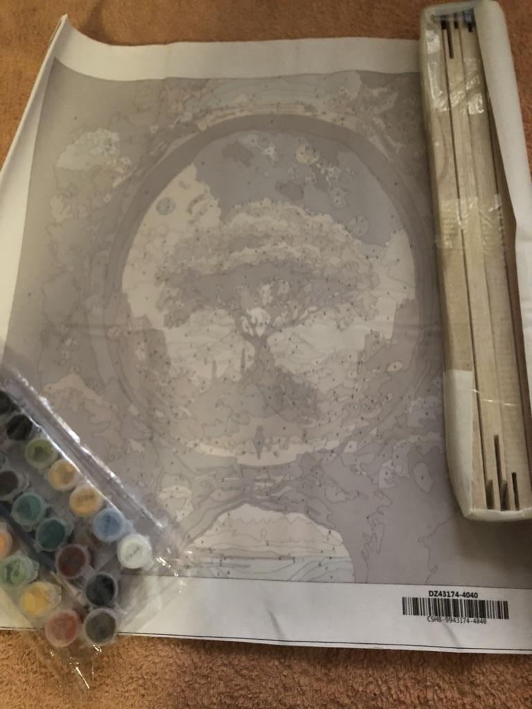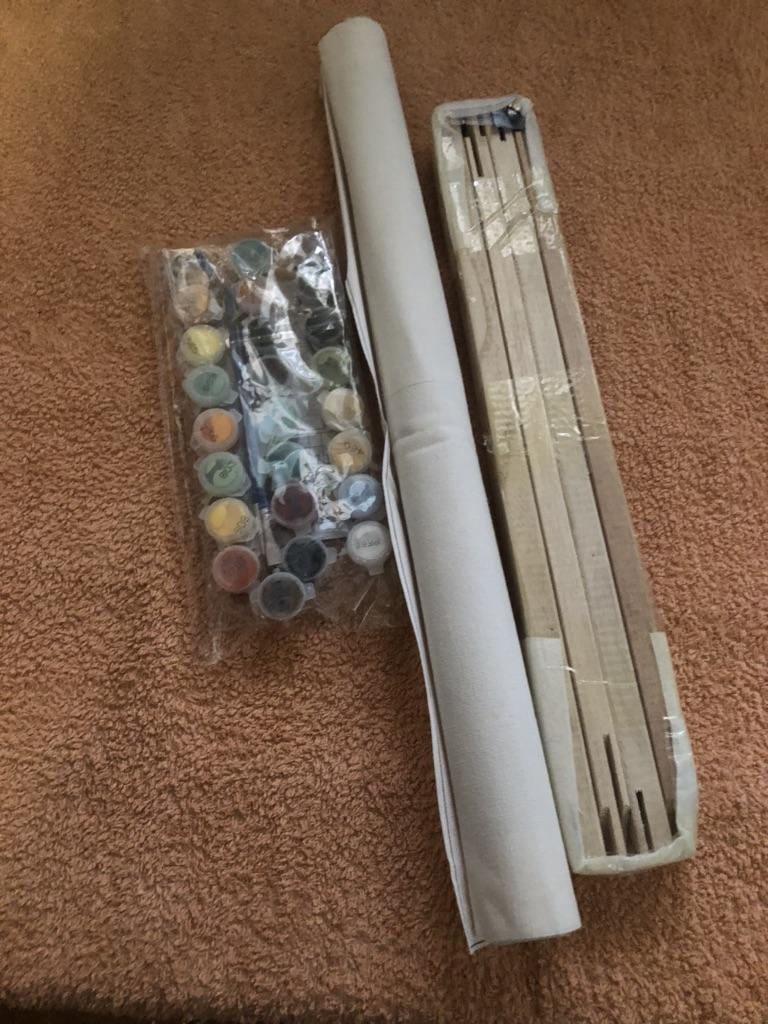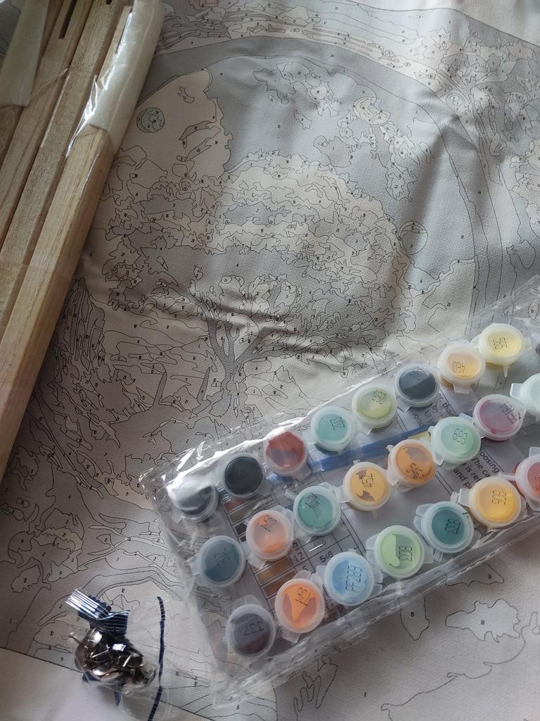 Вторую картину беру подобного плана, собирается рама очень просто и быстро. В комплекте есть весе краски, наклейки с номерами к ним, инструкция с наименованием красок и цифр к ним, кнопки чтоб прикрепить. Все заняло минут 15-20, краски сами не проверяла, в остальном все отлично