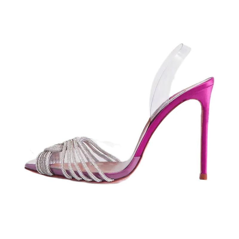 Женские туфли-лодочки с острым носком, на тонком высоком каблуке, с прозрачными кристаллами, женская модная карьерная обувь, летние серебристые, светло-голубые, персиковые 45 — купить товар онлайн с бесплатной доставкой до всему миру!