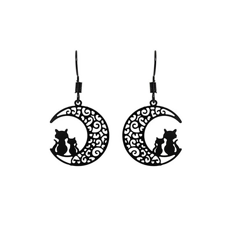 Модные милые серьги-крючки для ушей котенка для женщин, корейская мода, милые висячие серьги с черной луной и кошкой для девочек, ювелирные изделия, подарки