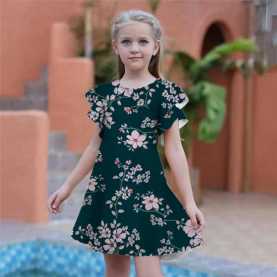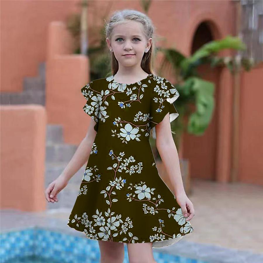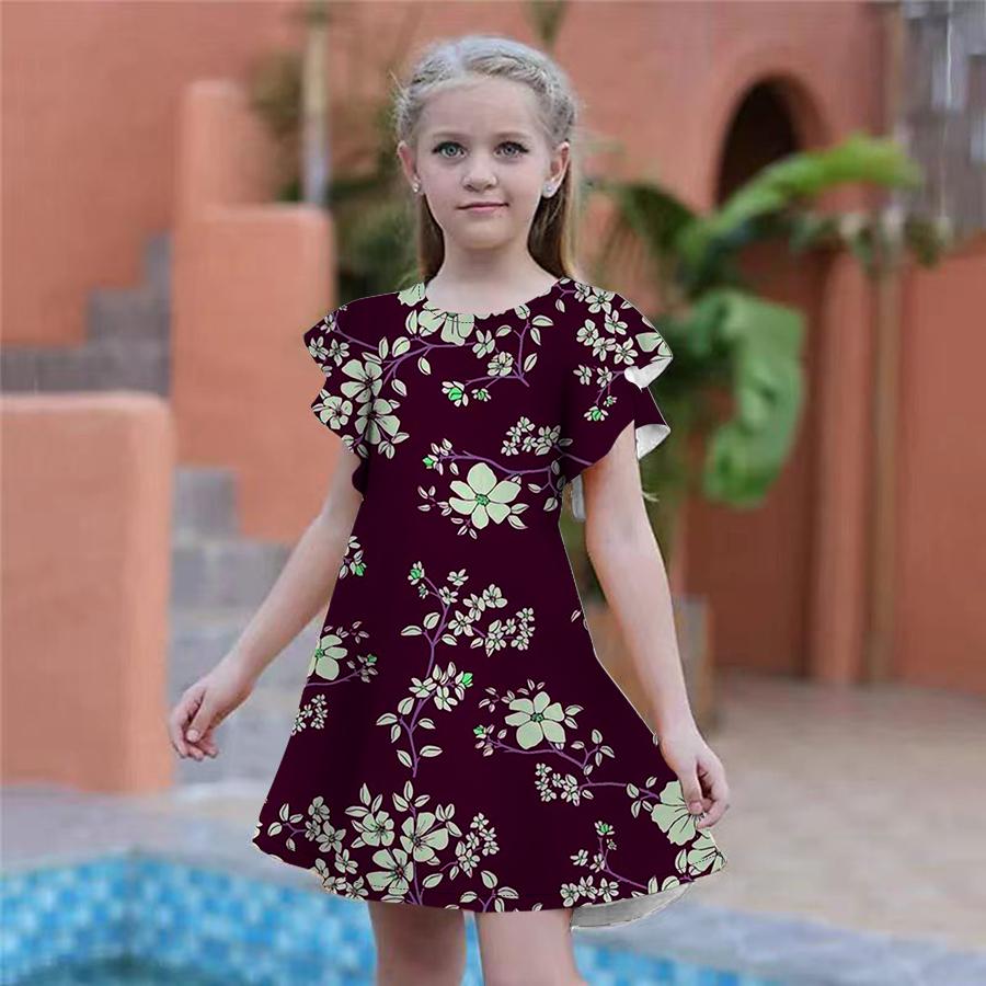 Платья с принтом оранжевых цветов для девочек. Детское праздничное платье для девочек. Свободный крой. Свободная юбка с короткими рукавами для девочек старше четырех лет.
