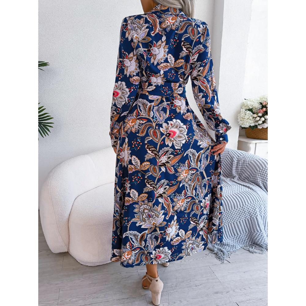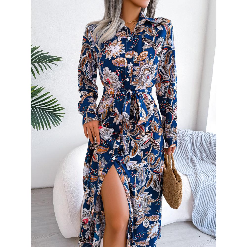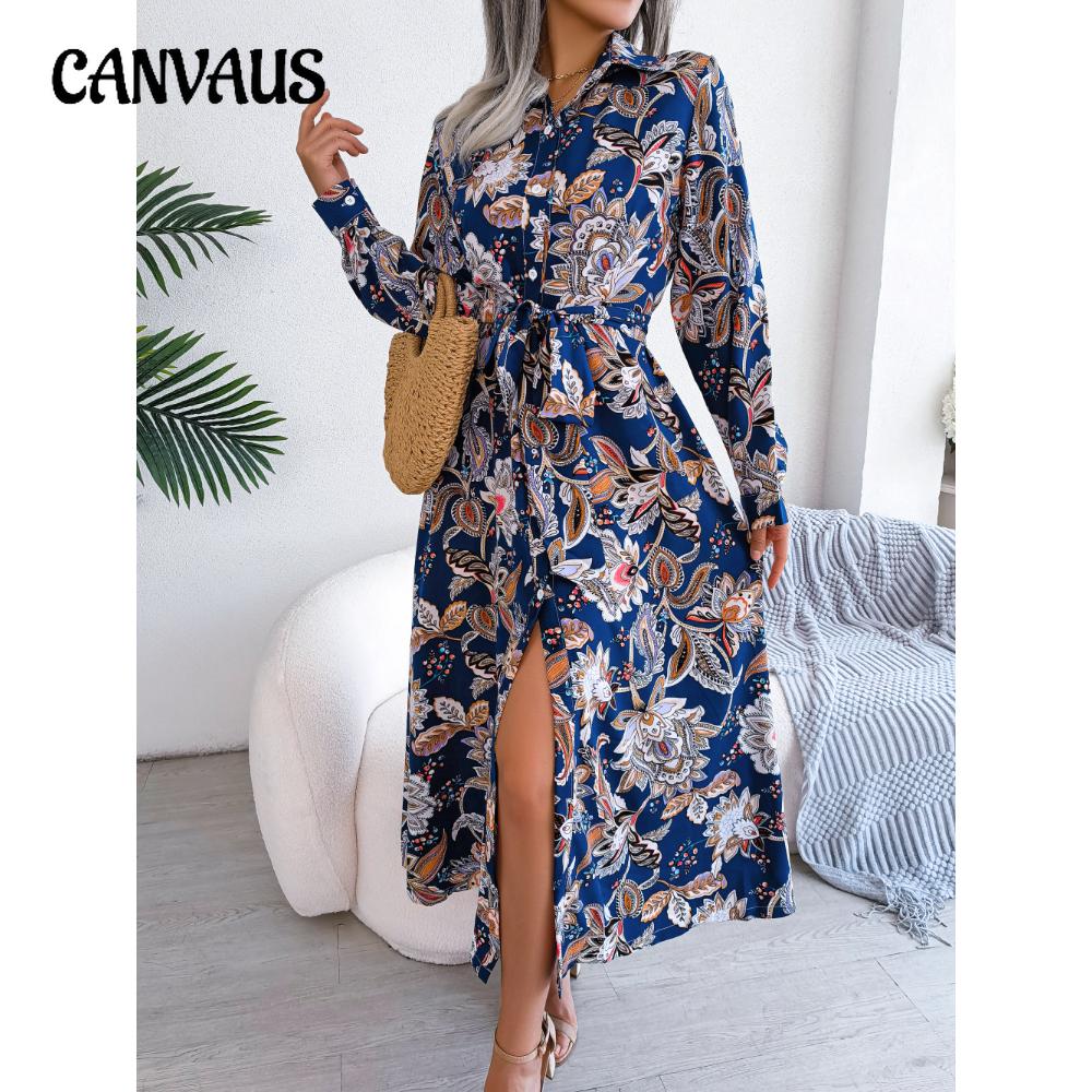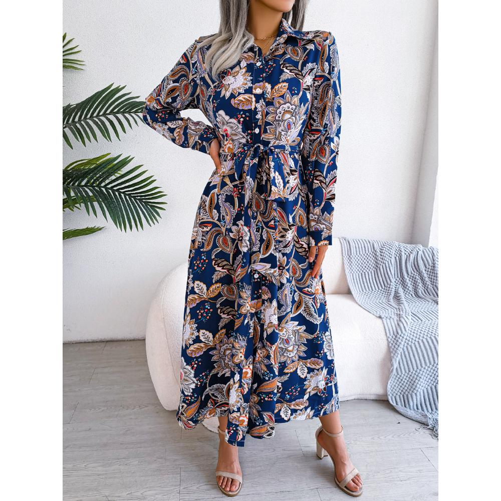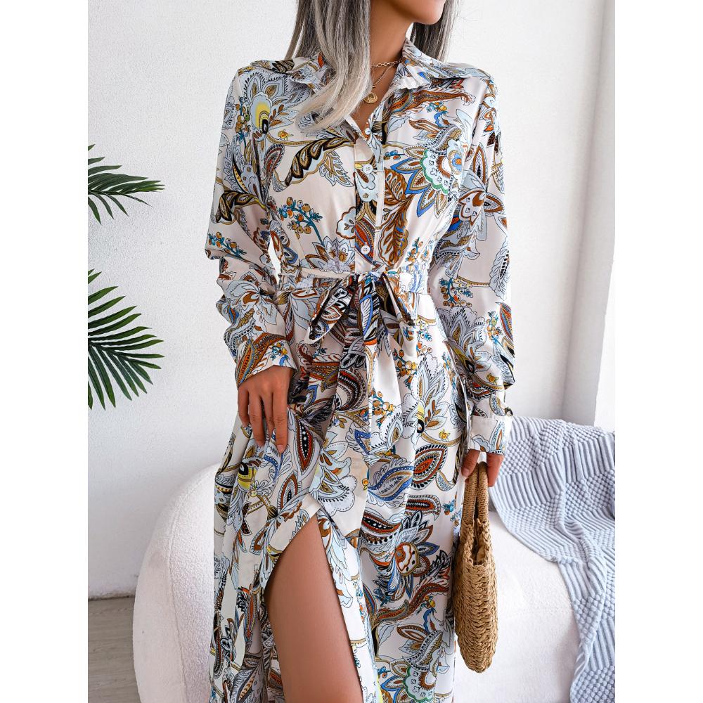 Весенне-осеннее женское платье, винтажное кружевное платье-рубашка с цветочными лацканами, длинное платье