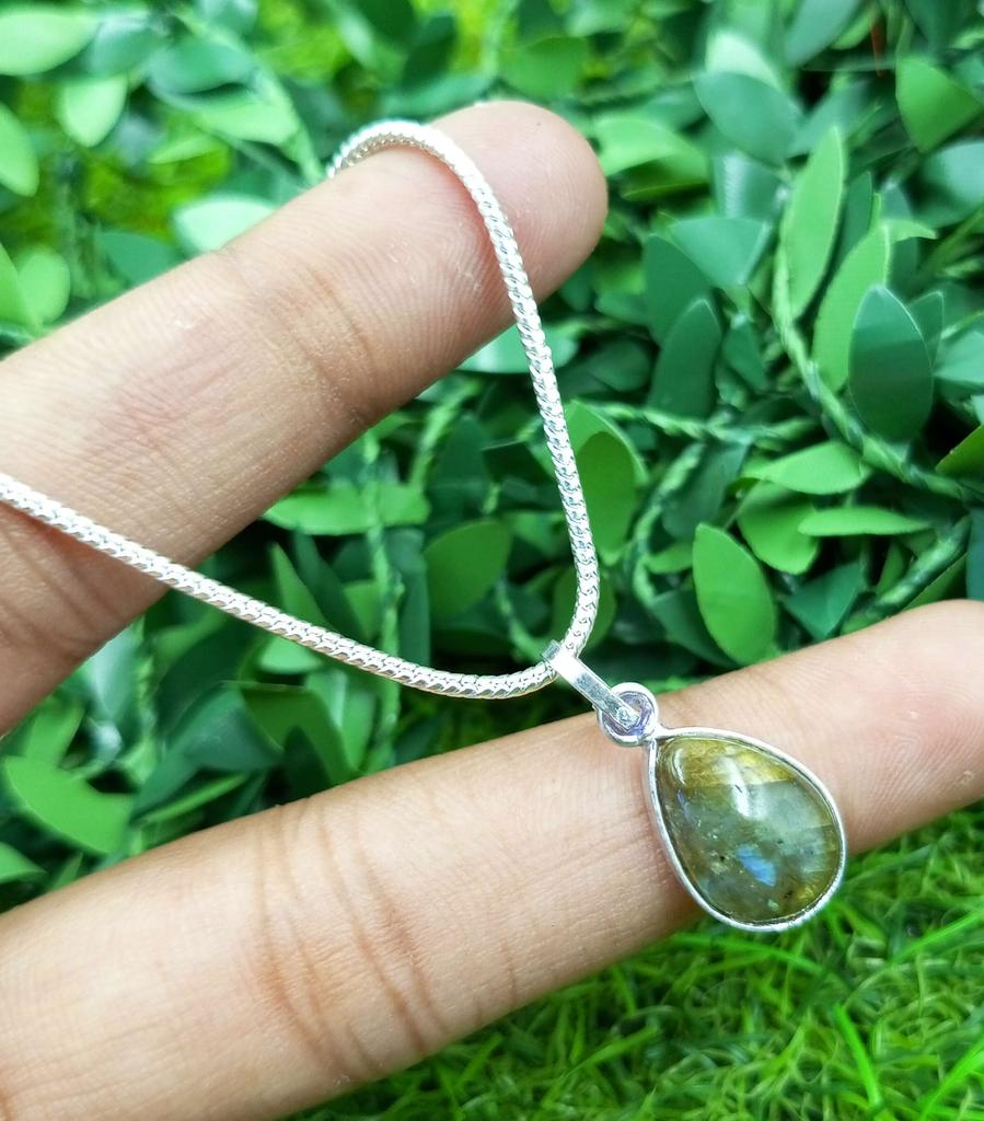 Лабрадорит Драгоценный камень Стерлингового серебра 925 пробы с покрытием безель Груша Подвеска Ювелирные изделия NST-J2H1476