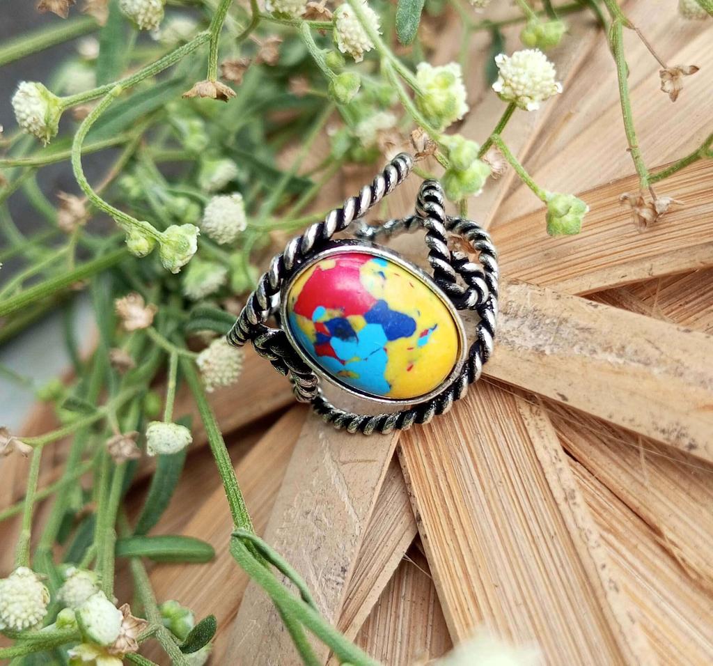 Mosaic Jasper Gemstone 925 Sterling Silver Plated Adjustable Ring Jewelry NST-J2H10398