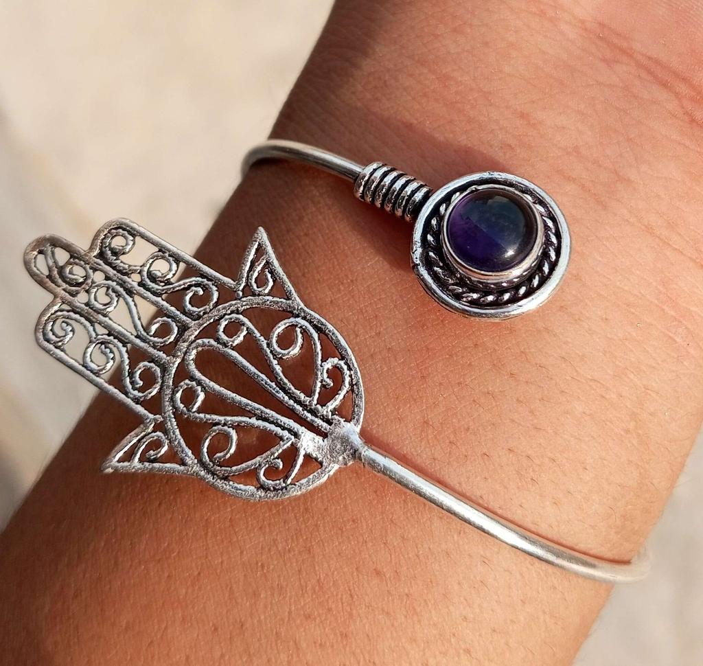 Аметист Драгоценный камень Стерлингового серебра 925 пробы Дизайнерский браслет-манжета Ювелирные изделия NST-J2H15872