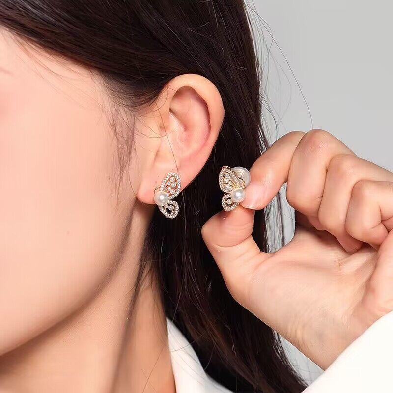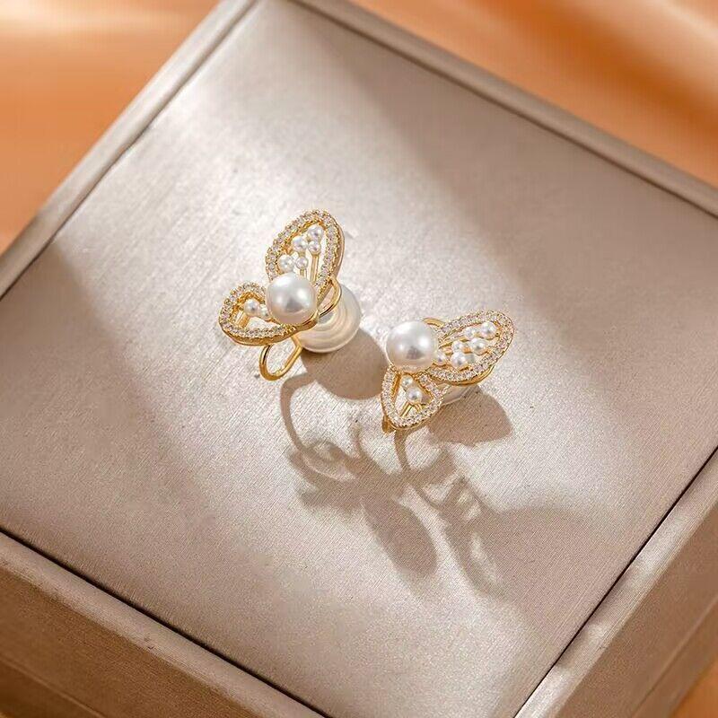 Имитация жемчуга и горный хрусталь, бабочка, катушка от комаров, зажим для ушей, женские серьги для пирсинга, 2023, новые модные серьги женские