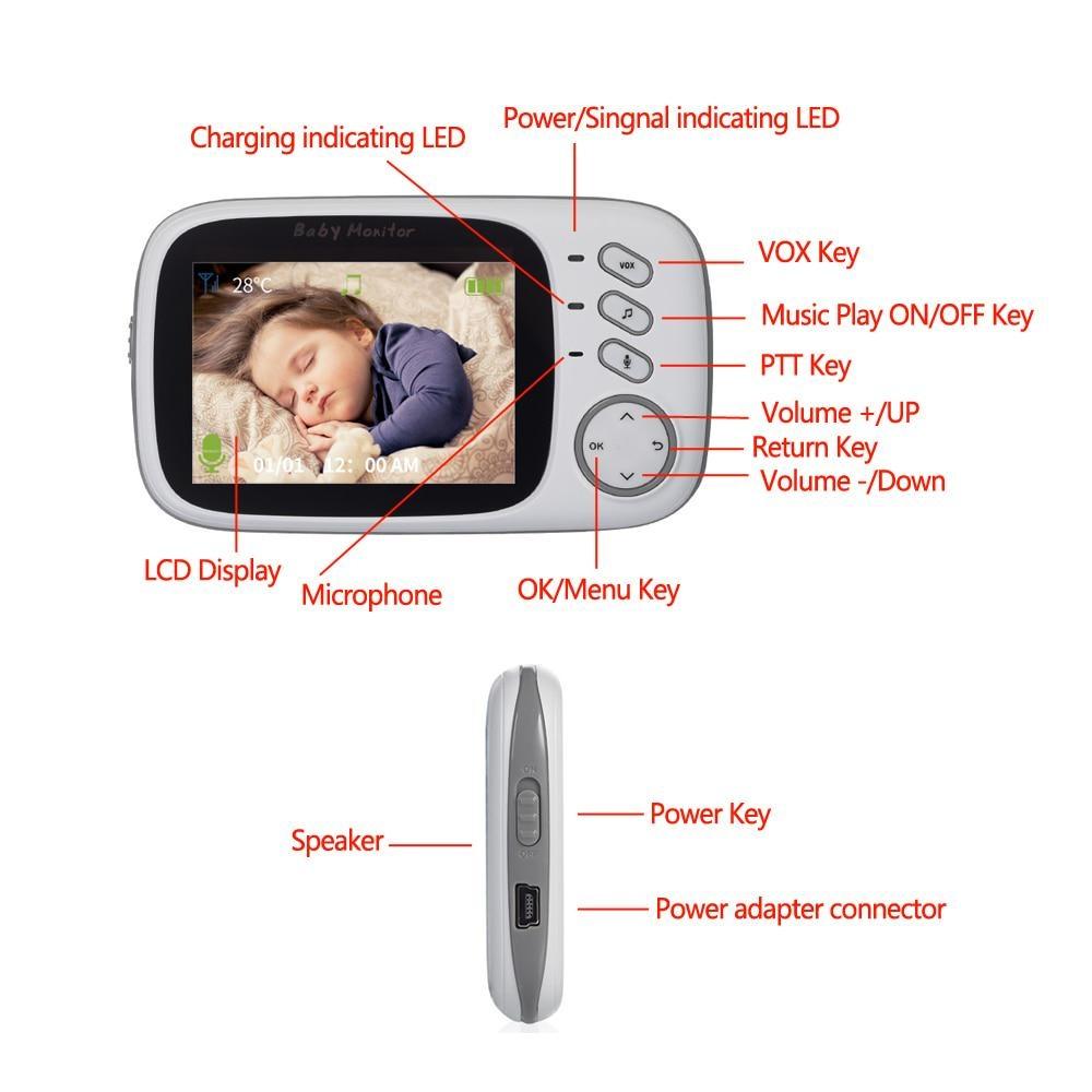 VB603 видеоняня 2,4G, беспроводная с 3,2-дюймовым ЖК-дисплеем, 2-сторонняя аудиосвязь, разговор, камера ночного видения, камера безопасности, няня