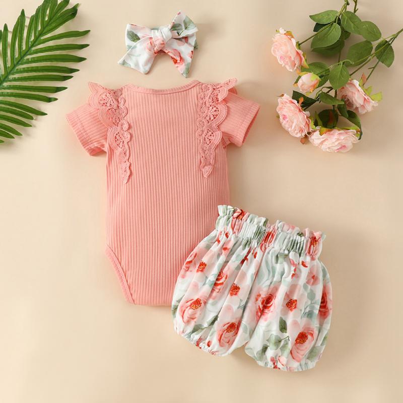 Маленькая девочка письмо принт короткие рукава halter топ с цветочным принтом шорты, отправить повязку для волос, сделать так, чтобы ваш ребенок выглядел милым и очаровательным