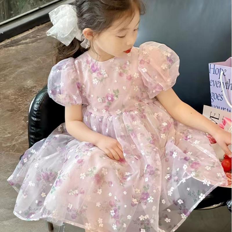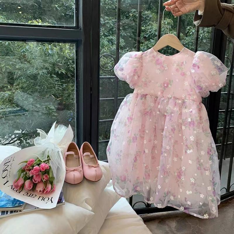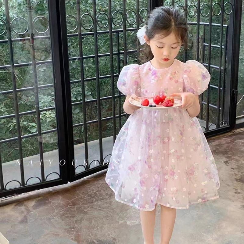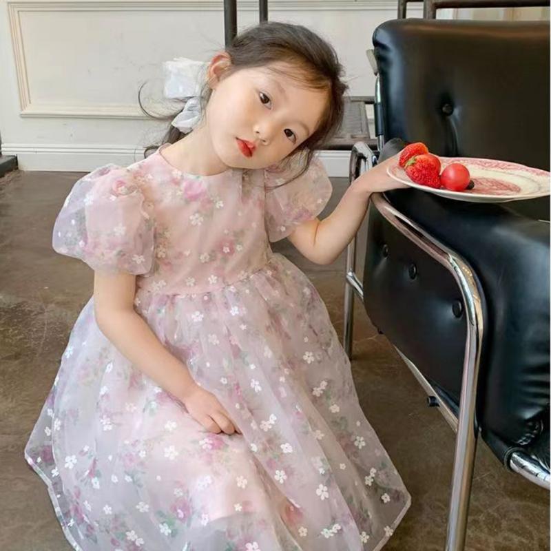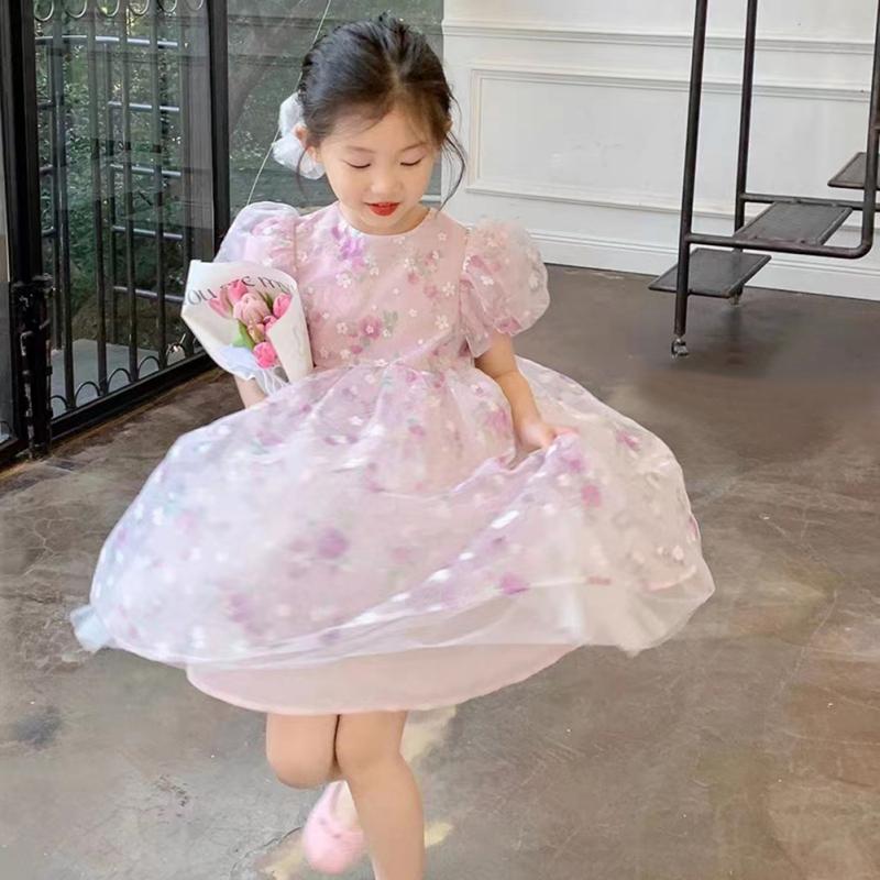 2. Платье для девочек летнее платье с короткими рукавами пышная сетчатая юбка принцессы, одетая в более милую детскую.