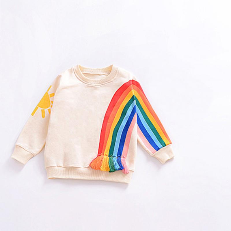 Футболки для девочек, милые топы с радужными кисточками и принтом солнца для маленьких девочек, толстовки с круглым вырезом и длинными рукавами — купить товар онлайн с бесплатной доставкой до всему миру!
