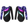 Детский гимнастический купальник с блестящим декором из стразов для девочек, боди с круглым вырезом и длинными рукавами для фитнеса и танцев, наряд