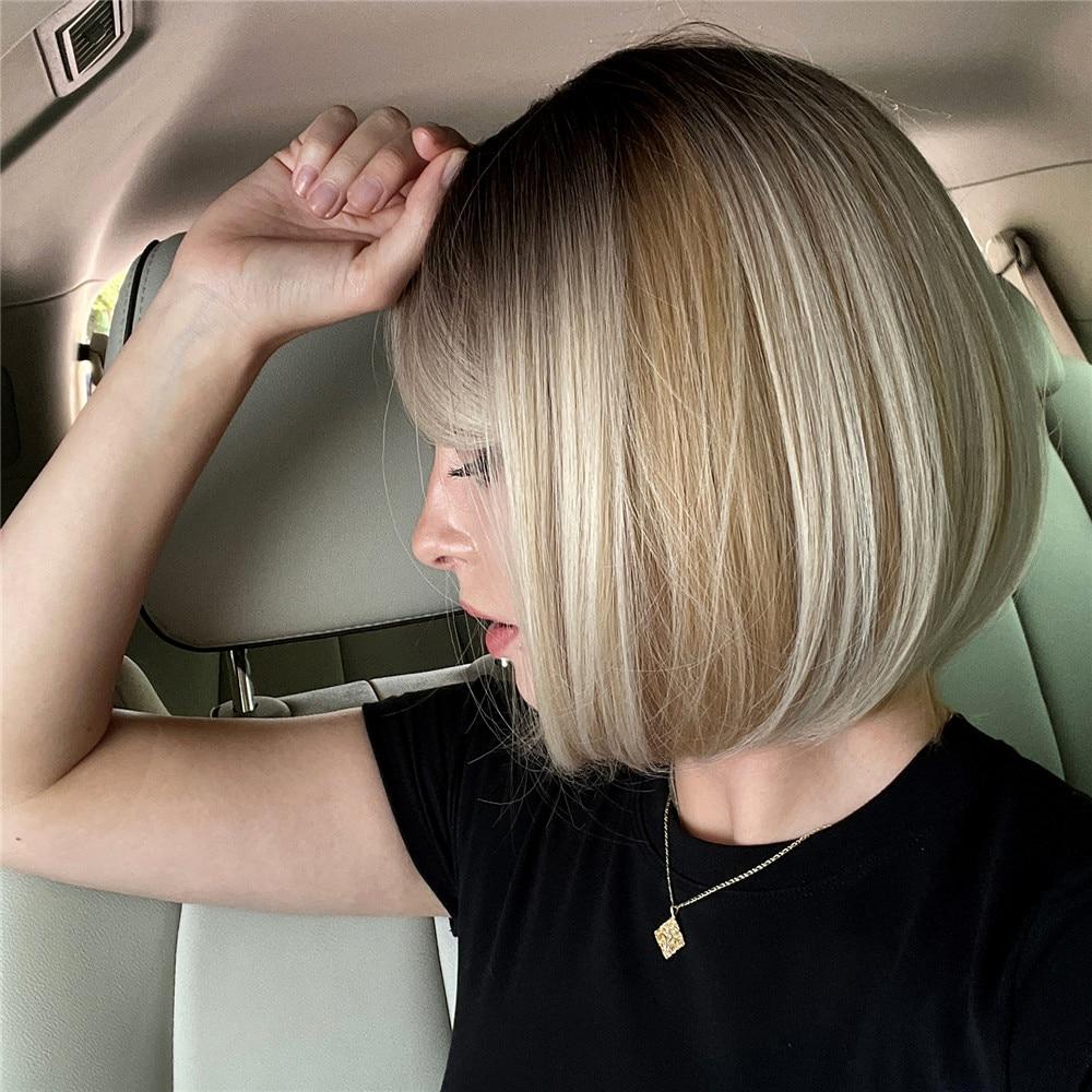 ALAN EATON Короткие светлые парики Ombre, прямые светлые парики боб с челкой, женские повседневные синтетические парики, натуральные высокотемпературные волосы